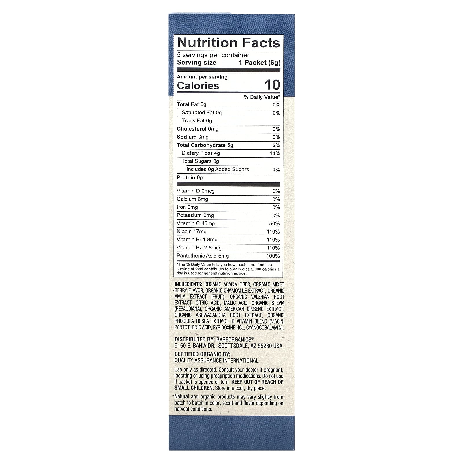 Наша восхитительная смесь изготовлена из валерианы и ромашки, чтобы помочь вам заснуть. Просыпайтесь каждое утро, чувствуя себя отлично с AMLA и ашвагандой, дополняющими этот увлажняющий усилитель! Растворяется в горячей или холодной воде с прекрасным вкусом органического ягодного напитка, которым можно наслаждаться дома или в дороге.