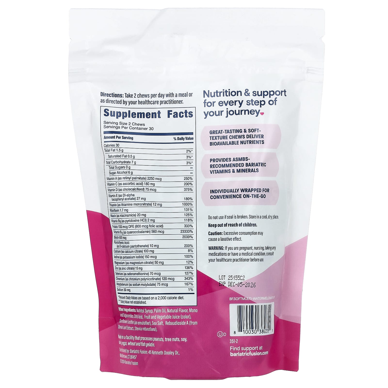 Содержит бариатрические витамины и минералы, рекомендованные ASMBS.