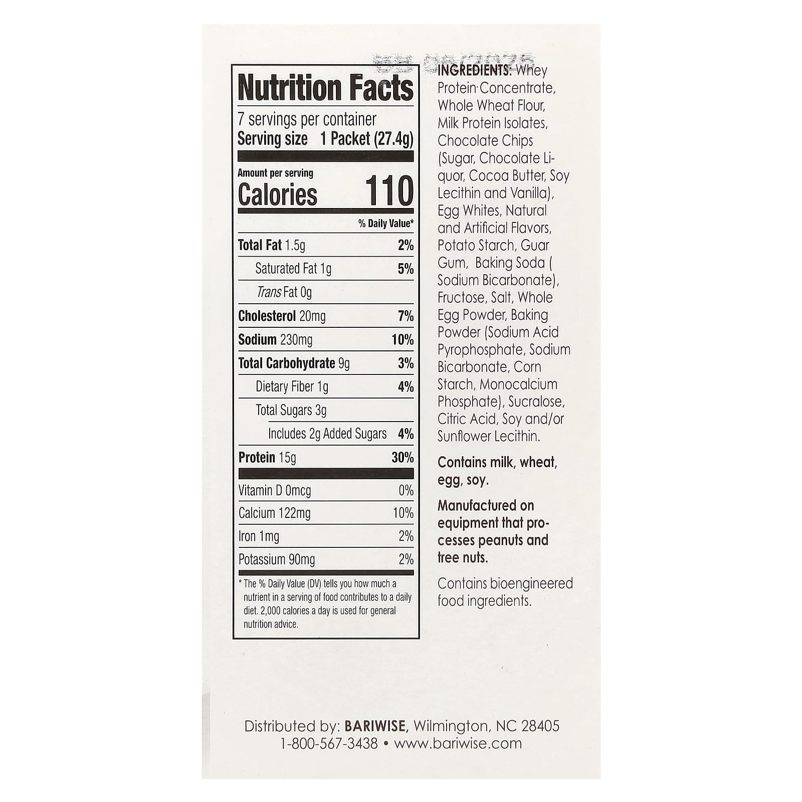 Концентрат сывороточного протеина, цельнозерновая пшеничная мука, изоляты молочного белка, шоколадная крошка (сахар, тертое какао, какао-масло, соевый лецитин и ваниль), яичный белок, натуральные и искусственные ароматизаторы, картофельный крахмал, гуаровая камедь, пищевая сода (бикарбонат натрия), фруктоза, соль, порошок из цельных яиц, разрыхлитель (пирофосфорнокислый натрий, бикарбонат натрия, кукурузный крахмал, монокальцийфосфат), сукралоза, лимонная кислота, лецитин сои и/или подсолнечника.