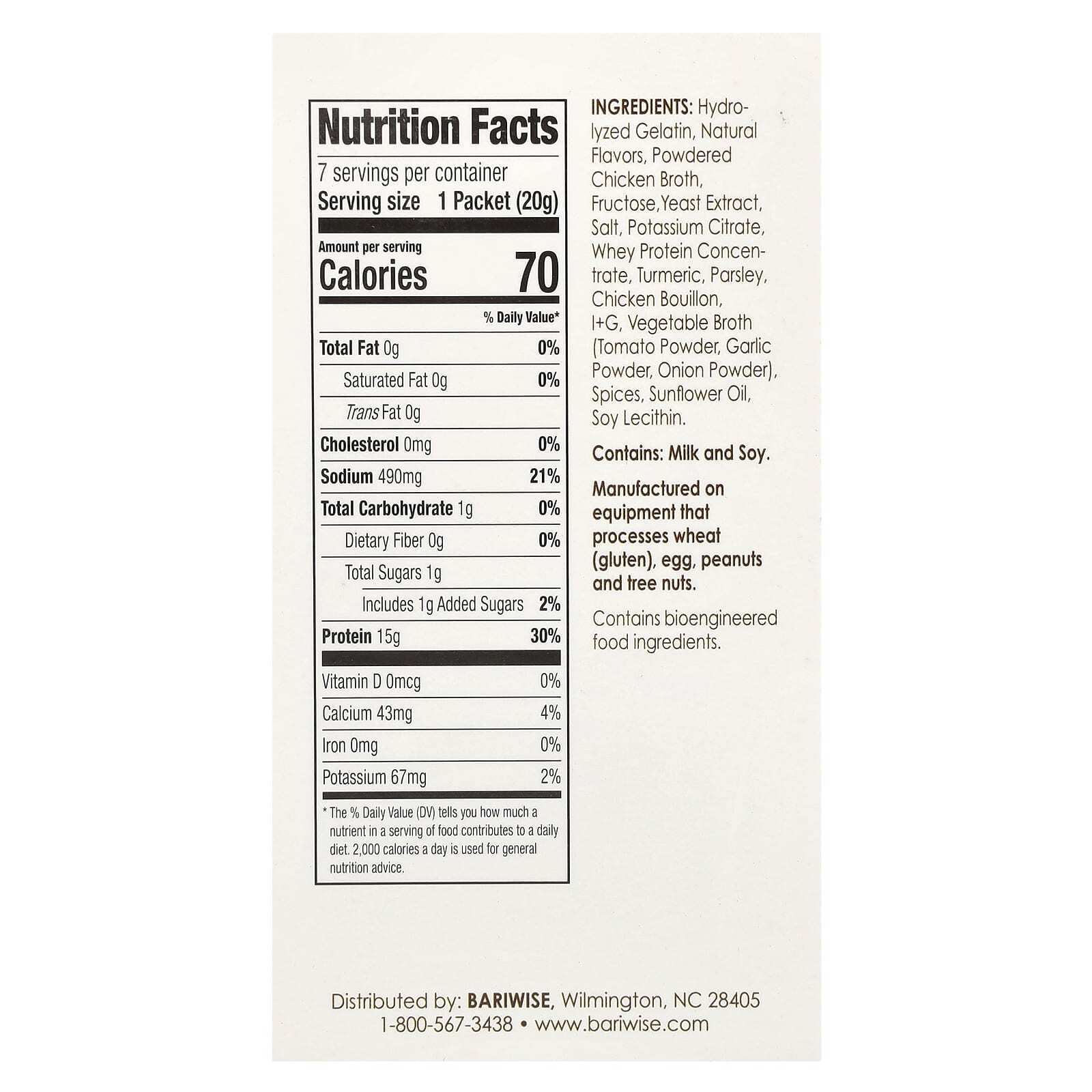 Гидролизованный желатин, натуральные ароматизаторы, порошок из куриного бульона, фруктоза, экстракт дрожжей, соль, цитрат калия, концентрат сывороточного протеина, куркума, петрушка, куриный бульон, i+g, овощной бульон (томатный порошок, чесночный порошок, луковый порошок), специи, подсолнечное масло, лецитин из сои.