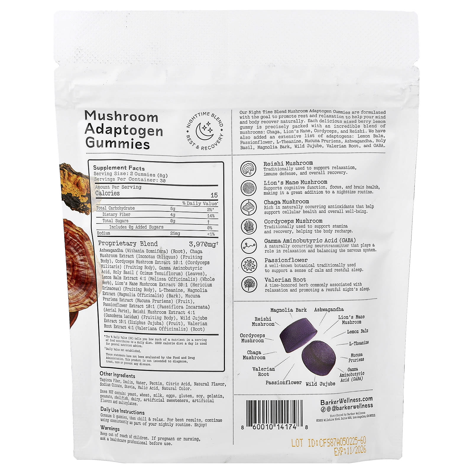 Наши жевательные таблетки с адаптогенами и грибной смесью для приема перед сном разработаны с целью способствовать отдыху и расслаблению, чтобы помочь вашему разуму и телу естественным образом восстановиться. Каждая восхитительная жевательная таблетка с ягодами и лимоном содержит невероятную смесь грибов: чага, ежовик гребенчатый, кордицепс и рейши. Кроме того, мы добавили обширный список адаптогенов: мелисса, пассифлора, L-теанин, мукуна жгучая, ашваганда, базилик священный, кора магнолии, дикий ююба, корень валерианы и ГАМК.