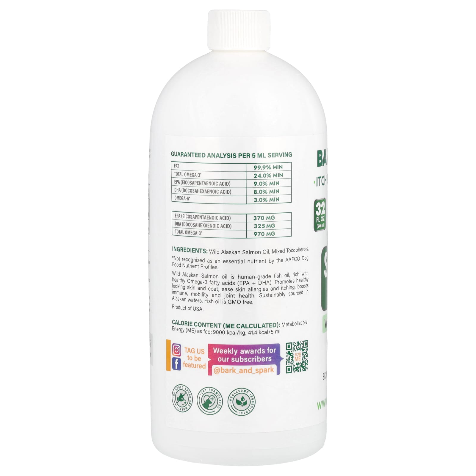 Wild Alaskan Salmon oil is human-grade fish oil, rich with healthy Omega-3 fatty acids (EPA + DHA). Promotes healthy looking skin and coat, ease skin allergies and itching, boosts immune, mobility and joint health. Sustainably sourced in Alaskan waters. Fish oil is GMO free.