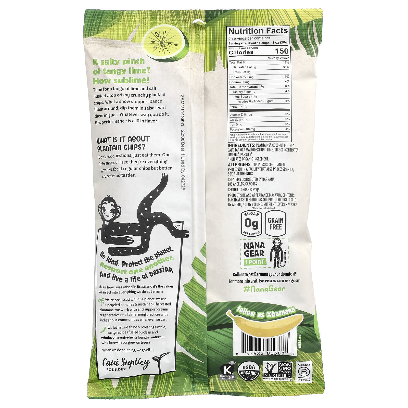 Подорожники1, кокосовое масло1, морская соль, мальтодекстрин из тапиоки1, концентрированный сок лайма1, масло лайма1, петрушка1.