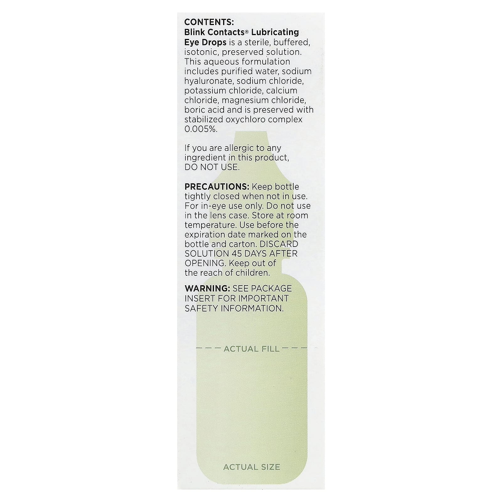 Глазные капли Blink Контактс® — это стерильный буферизованный изотонический раствор консерванта.