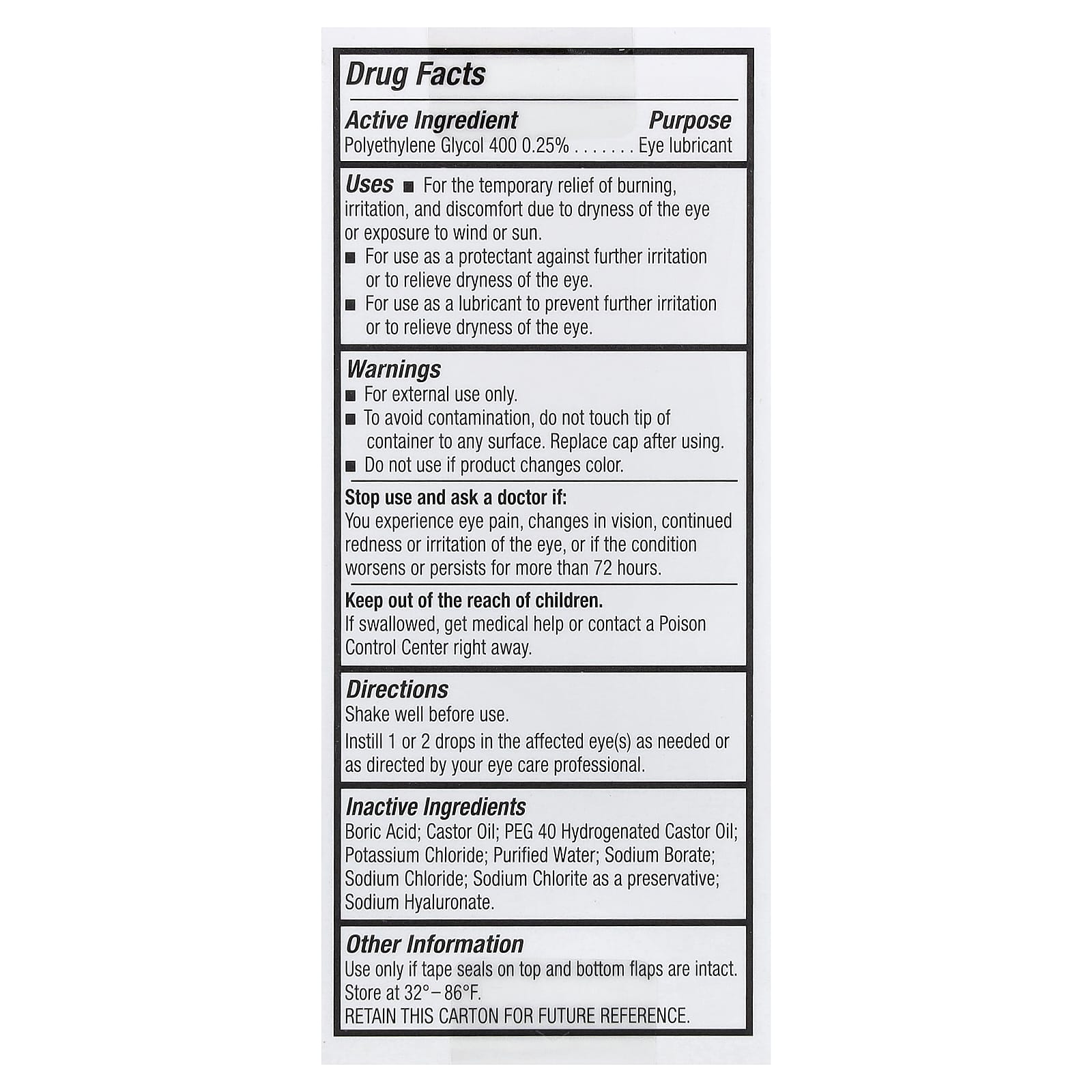 | Полиэтиленгликоль 400 0,25% | Смазка глаз |