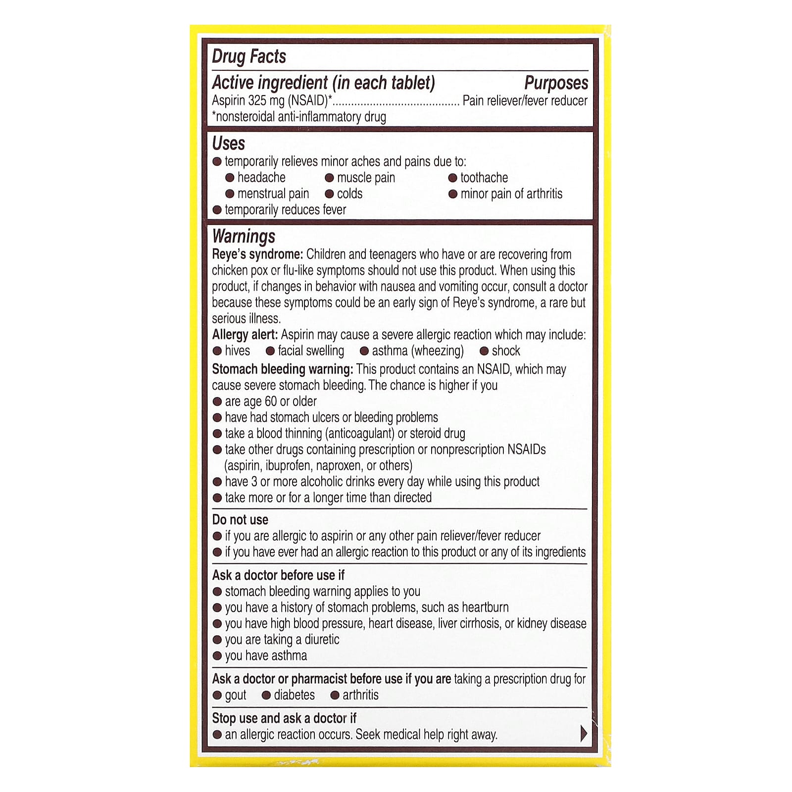 Bayer, Натуральный аспирин, 325 мг, 100 таблеток, покрытых оболочкой