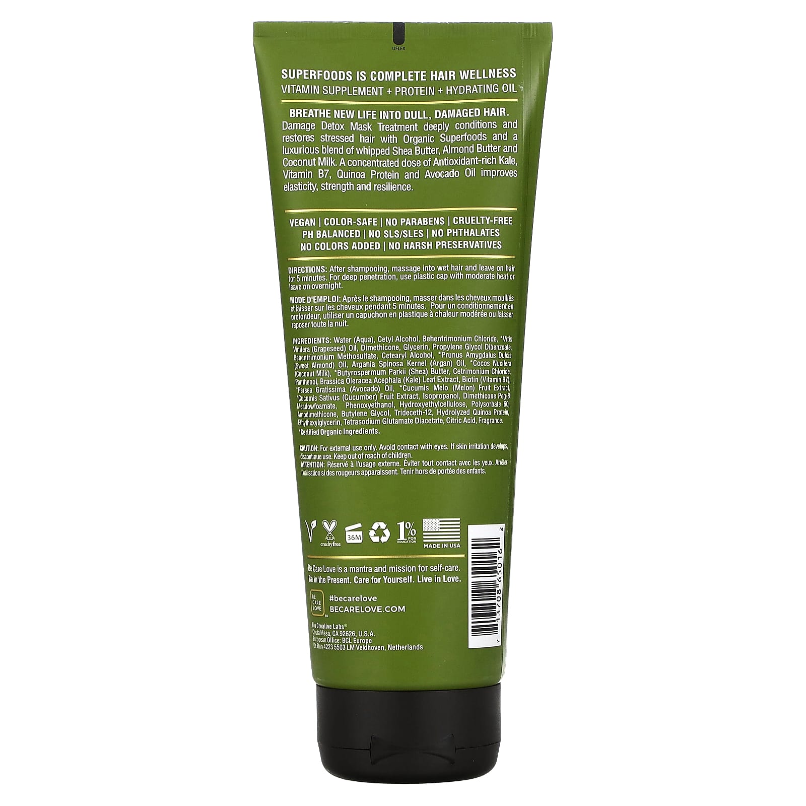 Детокс-маска от повреждений глубоко ухаживает и восстанавливает поврежденные волосы с помощью органических суперфудов и роскошной смеси взбитого масла ши, миндального масла и кокосового молока. Концентрированная доза богатой антиоксидантами капусты, витамина B7, белка киноа и масла авокадо повышает эластичность, силу и упругость.