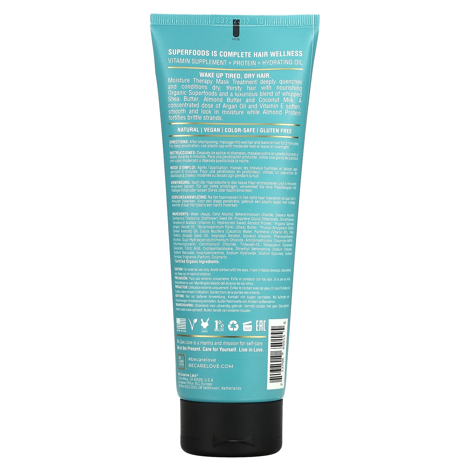 Увлажняющая маска для глубокого утоления и кондиционирования сухих, испытывающих жажду волос с помощью питательных органических суперфудов и роскошной смеси взбитого масла ши, миндального масла и кокосового молока. Концентрированная доза арганового масла и витамина Е смягчает, разглаживает и удерживает влагу, а миндальный протеин укрепляет ломкие волосы.
