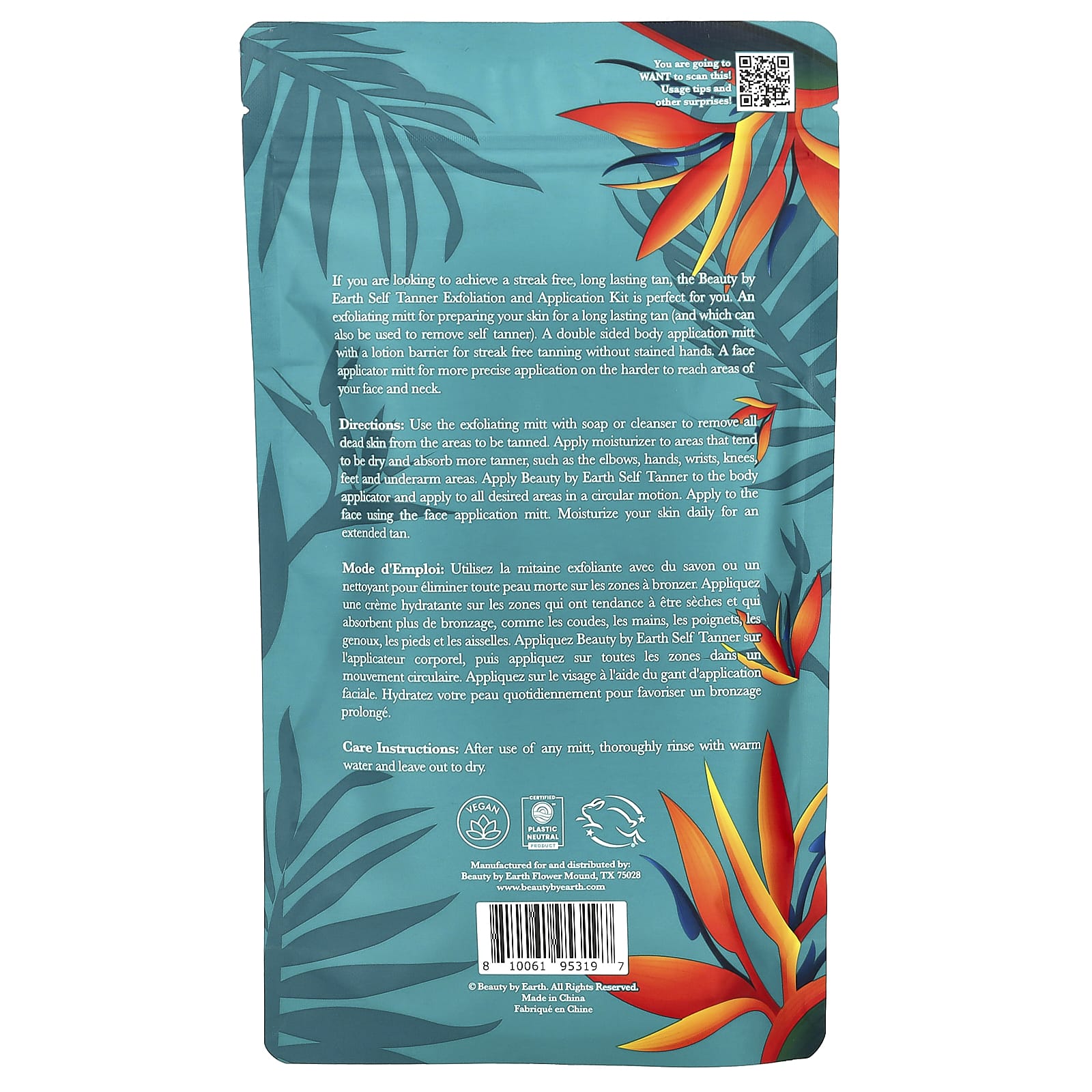 Если вы хотите добиться стойкого загара без разводов, вам идеально подойдет набор для отшелушивания и нанесения автозагара Beauty by Earth. Отшелушивающая варежка для подготовки кожи к стойкому загару (ее также можно использовать для снятия средства для автозагара). Двусторонняя рукавица с защитным лосьоном для загара без разводов и пятен на руках. Рукавица-аппликатор для более точного нанесения на труднодоступные участки лица и шеи.