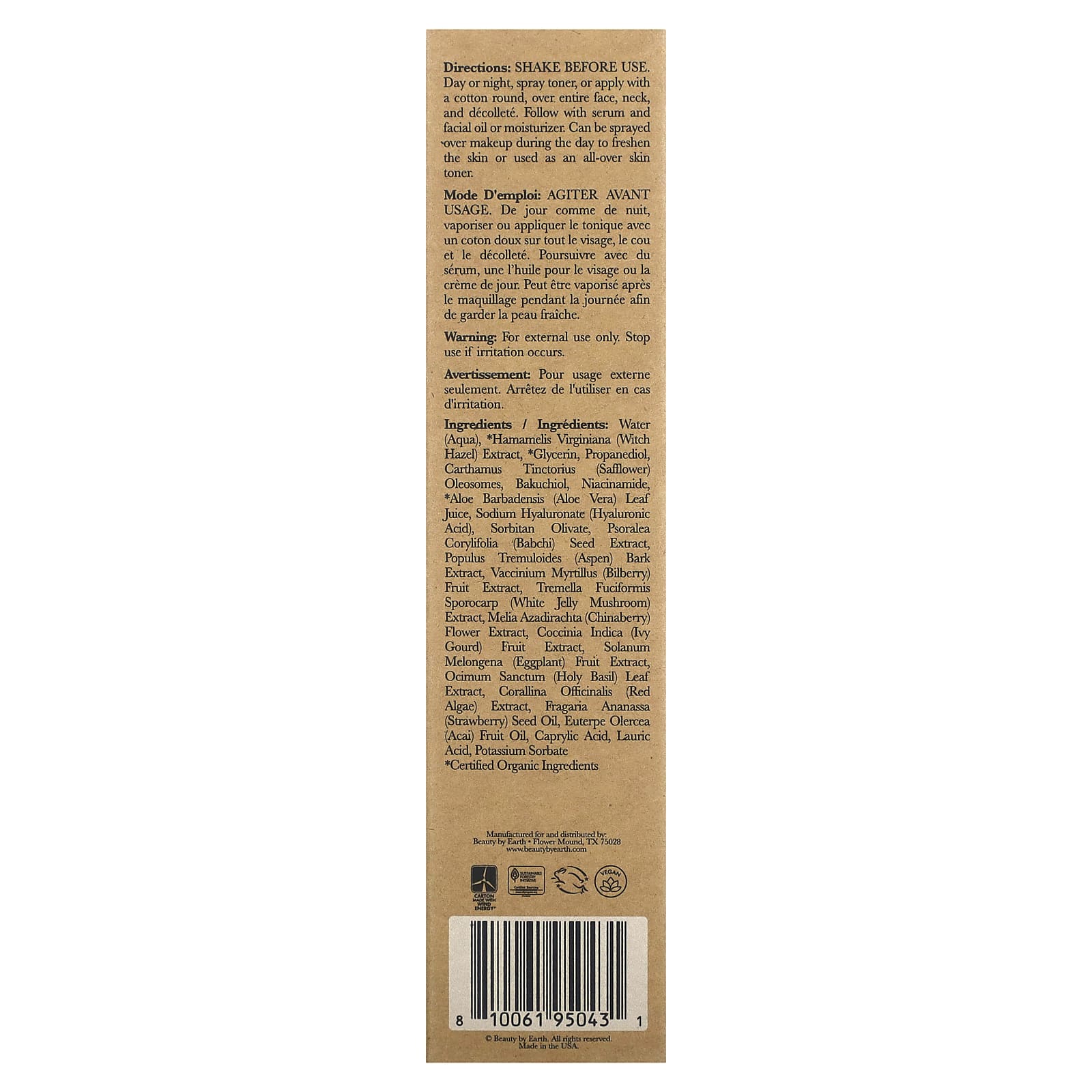 Перед использованием встряхните. Днем или вечером распылите тоник или нанесите с помощью ватного тампона на лицо, шею и зону декольте. Затем нанесите сыворотку и масло для лица или увлажняющий крем. Можно распылять поверх макияжа в течение дня, чтобы освежить кожу, или использовать в качестве тоника для всего тела.