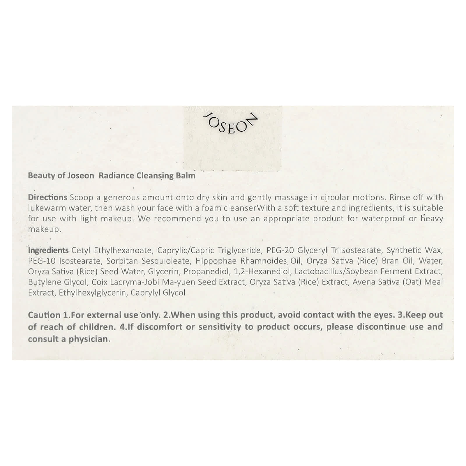 Цетил этилгексаноат, каприловый/каприновый триглицерид, ПЭГ-20 глицерил триизостеарат, синтетический воск, ПЭГ-10 изостеарат, сорбитана сесквиолеат, облепиха рамноидная (Hippophae rhamnoides), масло, масло из рисовых отрубей (Oryza sativa), вода, вода из семян риса (Oryza sativa), глицерин, пропандиол, 1,2-гександиол, лактобактерии (Lactobacillus) /ферментированный экстракт соевых бобов, бутиленгликоль, экстракт семян бусенника обыкновенного (Coix lacryma), экстракт риса (Oryza sativa), экстракт овсяной муки (Avena sativa), этилгексилглицерин, каприлилгликоль.