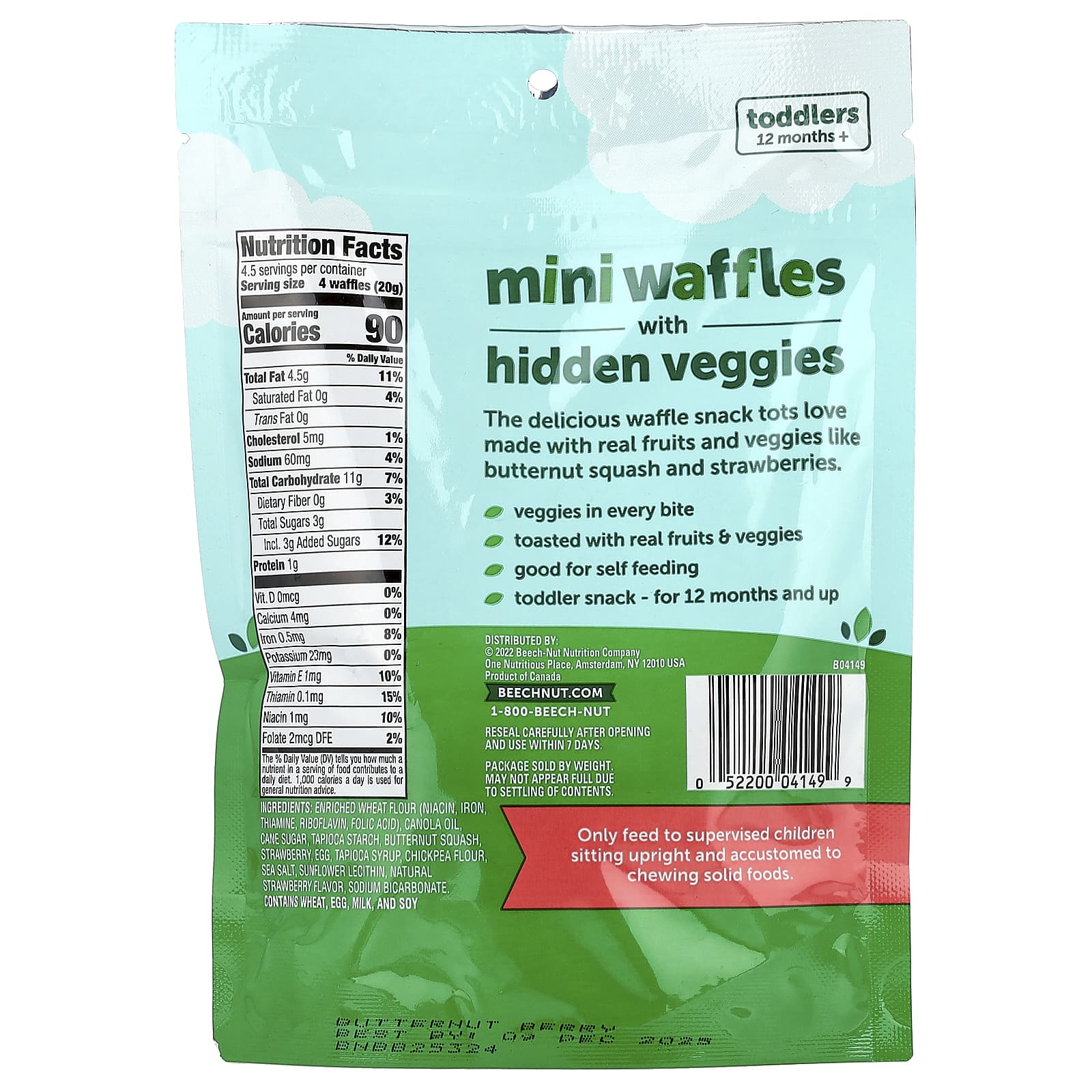 Обогащенная пшеничная мука (ниацин, железа, тиамин, рибофлавин, фолиевая кислота), рапсовое масло, тростниковый сахар, тапиоковый крахмал, мускатная тыква, клубника, яйца, тапиоковый сироп, нутовая мука, морская соль, подсолнечный лецитин, натуральный ароматизатор «Клубника», бикарбонат натрия.