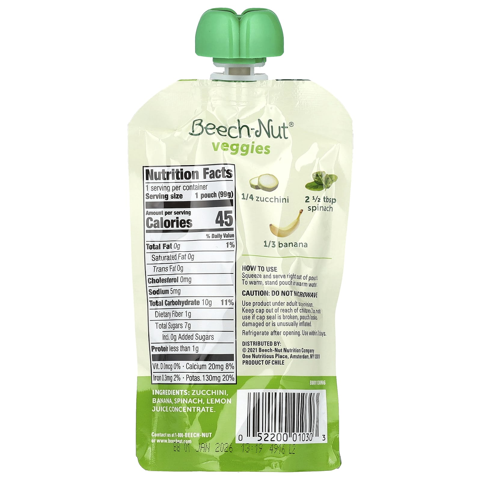 Пакеты для кормления детей и малышей Beech-Nut изготовлены из натуральных ингредиентов и упакованы в удобные пакеты для кормления на ходу. Наша овощная смесь содержит цукини, шпинат и банан. Это восхитительный способ выжать больше фруктов и овощей за день вашего малыша. Это пюре для стадии 2 идеально подходит для вашего ребенка от 6 месяцев.