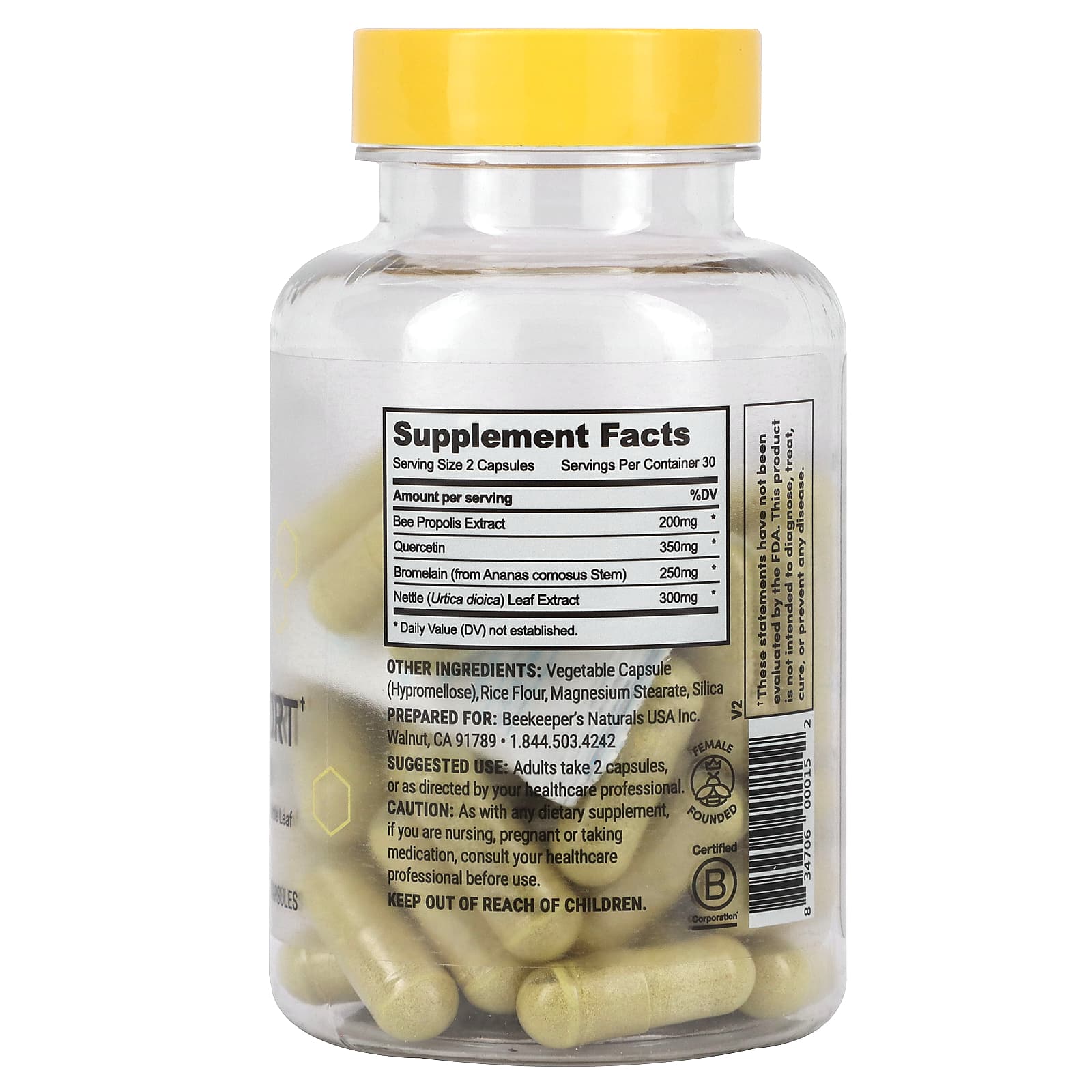 - Содержит кверцетин, бромелаин и листья крапивы