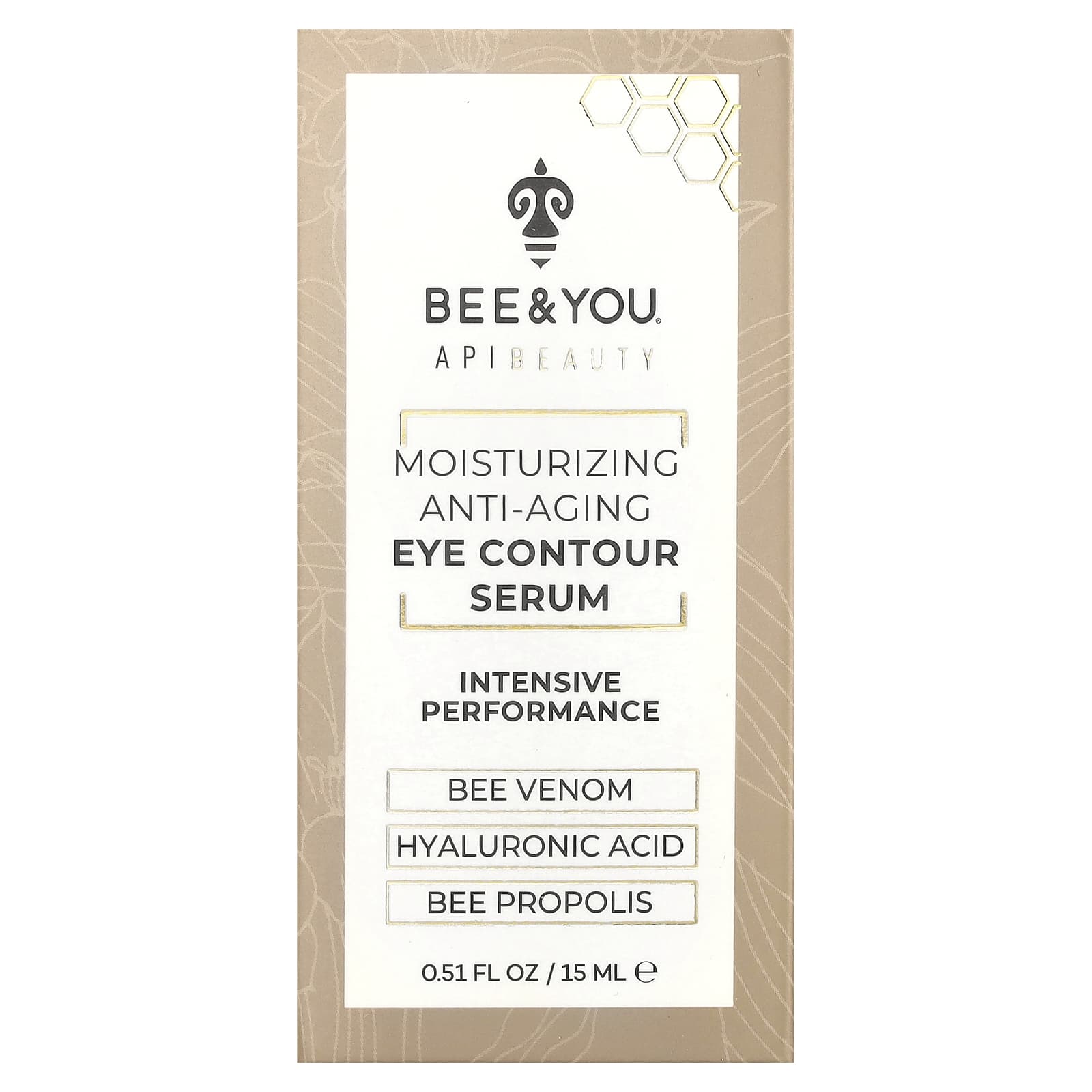 Увлажняющая антивозрастная сыворотка для контура глаз Bee & You Apibeauty увлажняет кожу натуральными растительными экстрактами, необработанным медом и пчелиным прополисом. Она естественным образом питает и придает коже сияние. Увлажняющая антивозрастная сыворотка для контура глаз с пчелиным ядом и гиалуроновой кислотой помогает уменьшить мелкие и глубокие морщины при регулярном использовании.