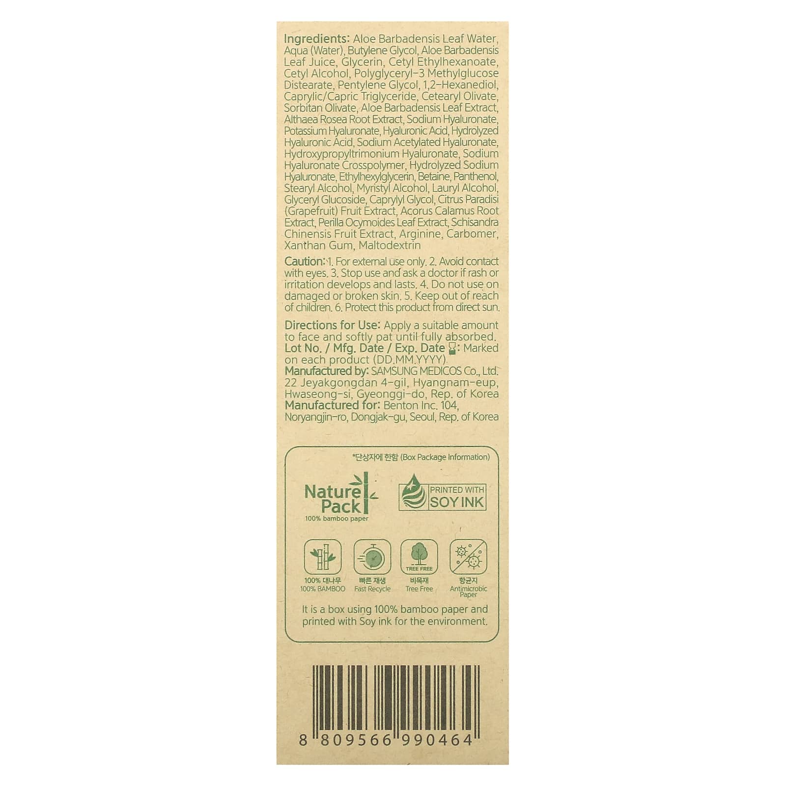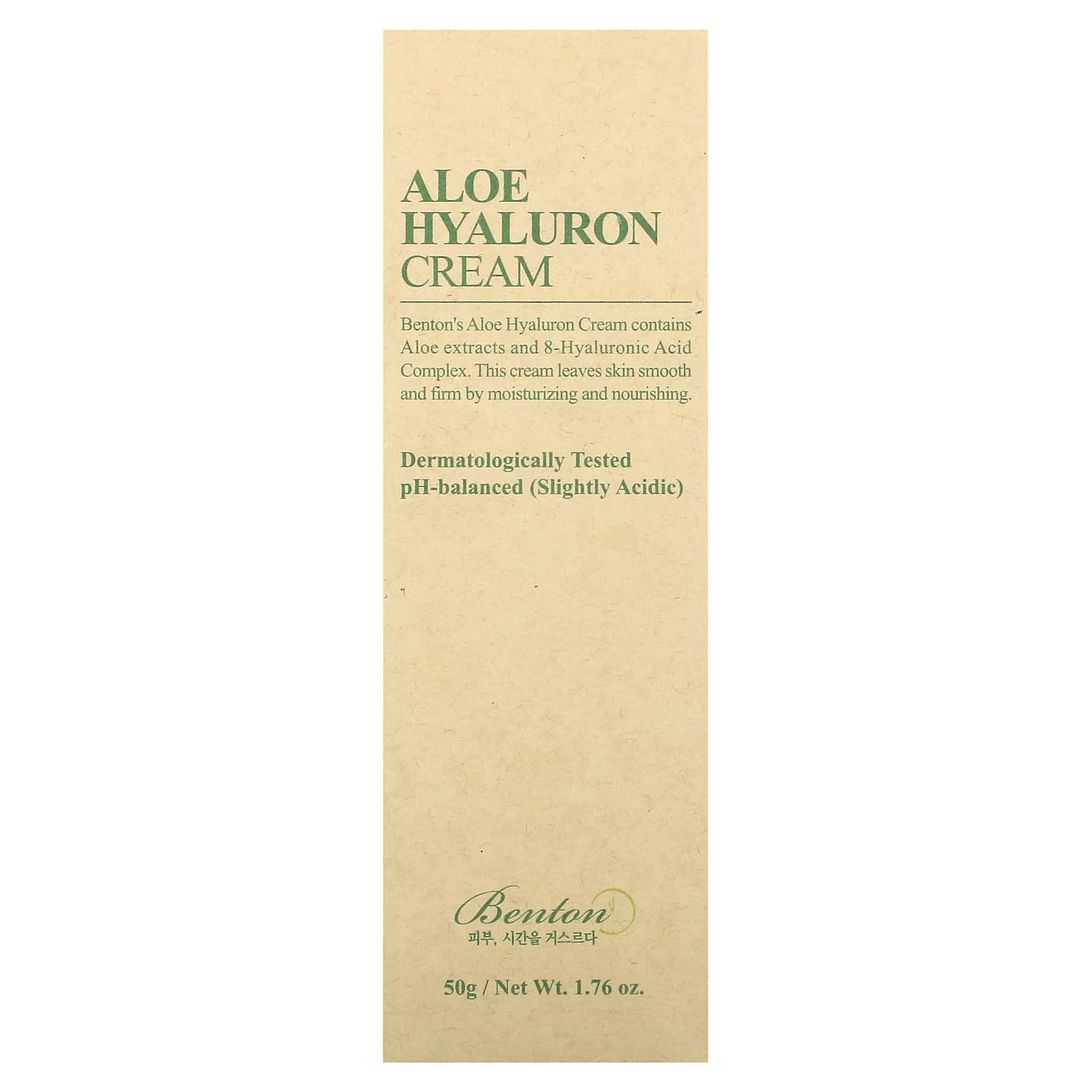 Крем с алоэ и гиалуроновой кислотой от Benton содержит экстракты алоэ и комплекс гиалуроновой кислоты 7. Крем делает кожу гладкой и упругой, увлажняя и питая ее.