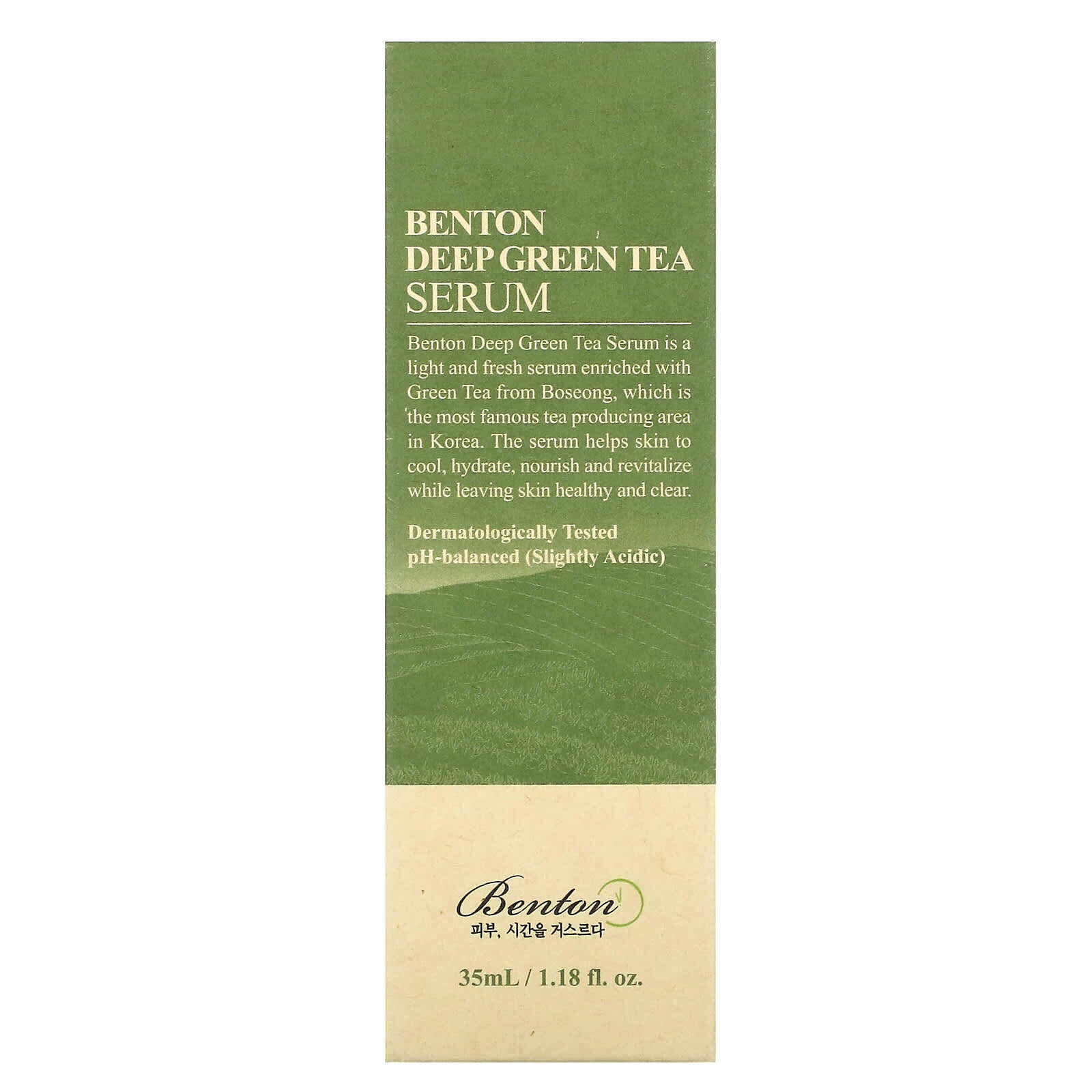 Сыворотка глубокого действия с зеленым чаем Benton — это легкая и свежая сыворотка, обогащенная зеленым чаем из корейского уезда Посон, известного своими чайными плантациями. Сыворотка охлаждает, увлажняет, питает и восстанавливает кожу, делая ее здоровой и чистой.