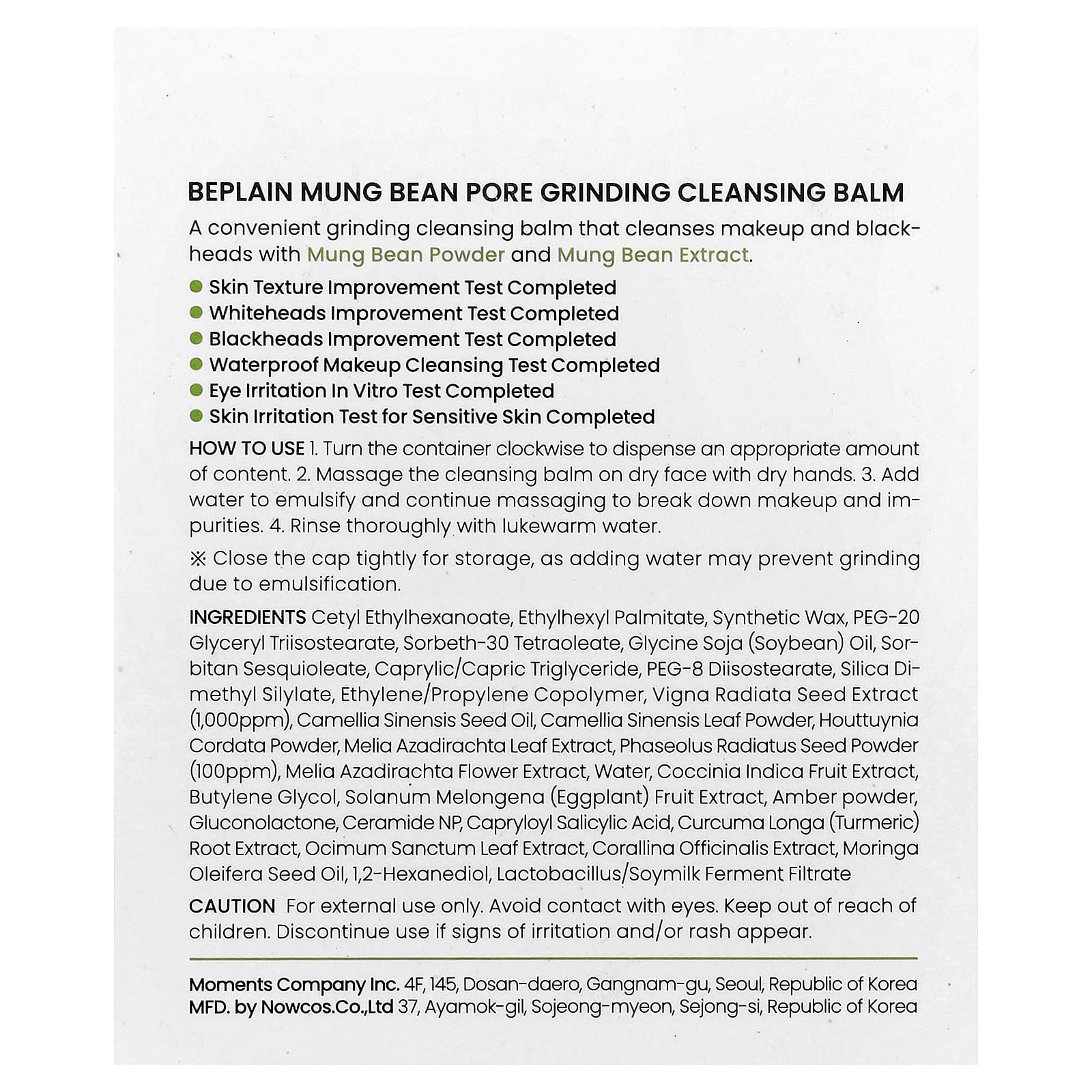 Цетил этилгексаноат, этилгексил пальмитат, синтетический воск, ПЭГ-20 глицерил триизостеарат, сорбет-30 тетраолеат, соевое масло (Glycine soja), сорбитана сесквиолеат, каприловый/каприновый триглицерид, ПЭГ-8 диизостеарат, диметил силилат диоксида кремния, сополимер этилена/пропилена, экстракт семян Vigna radiata (1000 част. / млн), масло из семян зеленого чая (Camellia sinensis), порошок из листьев зелёного чая (Camellia sinensis), порошок из хауттюйнии (Houttuynia cordata), экстракт листьев дерева ним (Melia azadirachta), порошок из семян Phaseolus radiatus (100 част. / млн), экстракт цветков дерева ним (Melia azadirachta), вода, экстракт плодов кокцинии индийской (Coccina indica), бутиленгликоль, экстракт плодов баклажана (Solanum melongena), янтарный порошок, глюконолактон, керамид NP, каприлоил салициловой кислоты, экстракт корня куркумы (Curcuma longa), экстракт листьев туласи (Ocimum sanctum), экстракт кораллины лекарственной (Corallina officinalis), масло из семян моринги масличной (Moringa oleifera), 1,2-гександиол, фильтрат фермента лактобактерий / соевого молока.