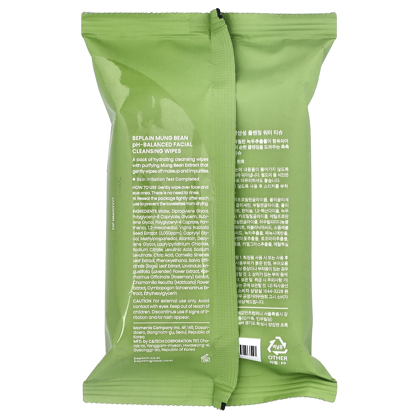 Набор увлажняющих очищающих салфеток с очищающим экстрактом бобов мунг, который мягко удаляет макияж и загрязнения.