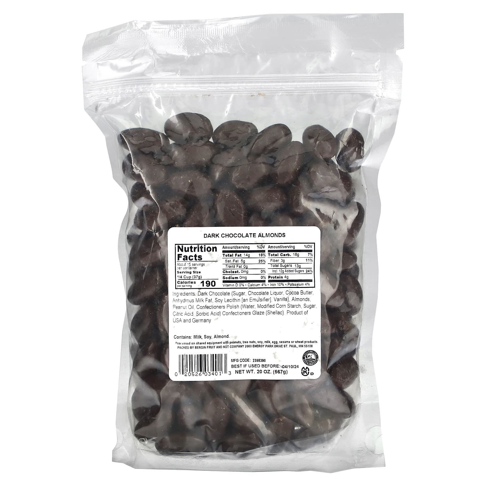 Bergin Fruit and Nut Company, Темный шоколад и миндаль, 567 г (20 унций)