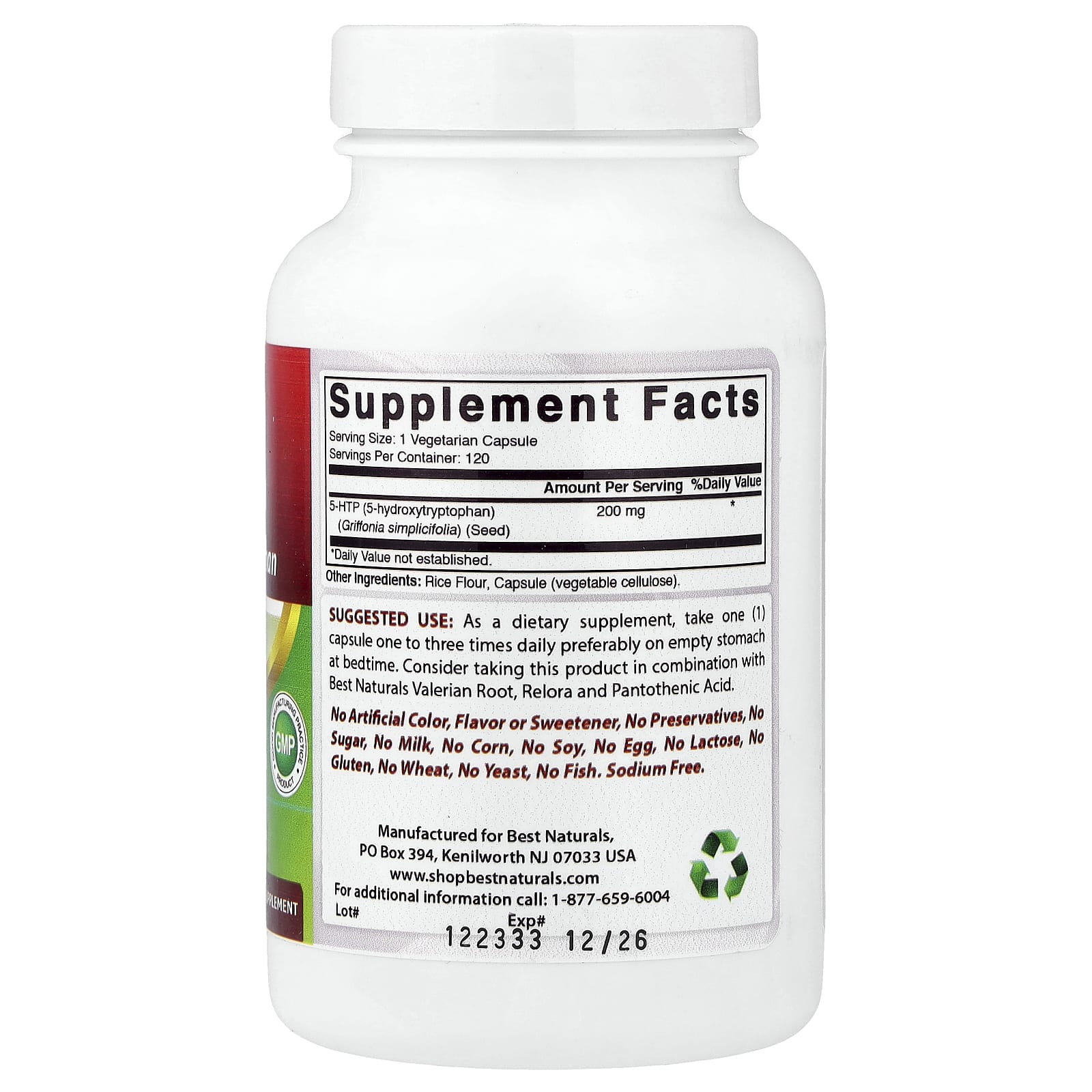 В качестве пищевой добавки принимать по одной (1) капсуле от одного до трех раз в день, желательно натощак перед сном. Попробуйте принимать этот продукт в сочетании с корнем валерианы, релорой и пантотеновой кислотой от Best Naturals.