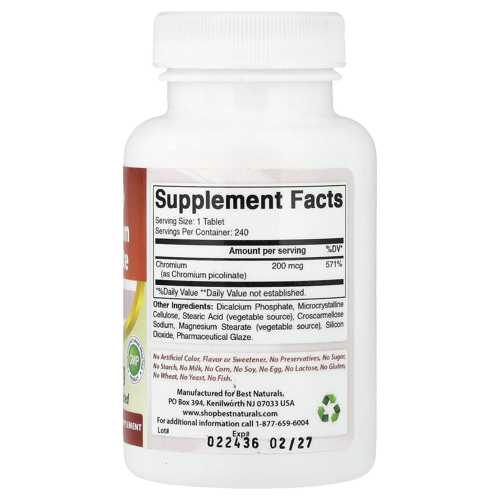 | Хром (в виде пиколината хрома) | 200 мкг | 571% |