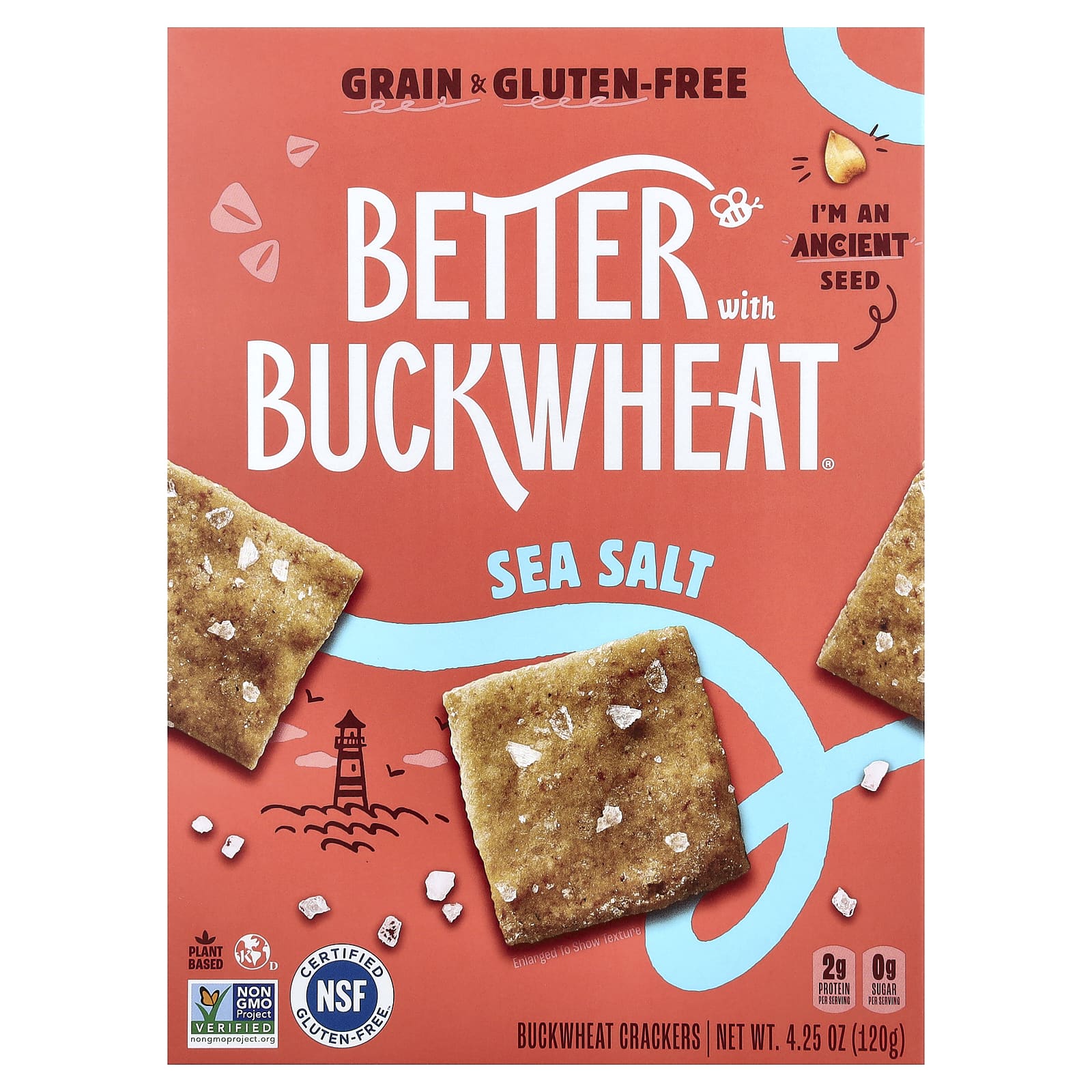 Better with Buckwheat, Гречневые крекеры, морская соль, 120 г (4,25 унции)