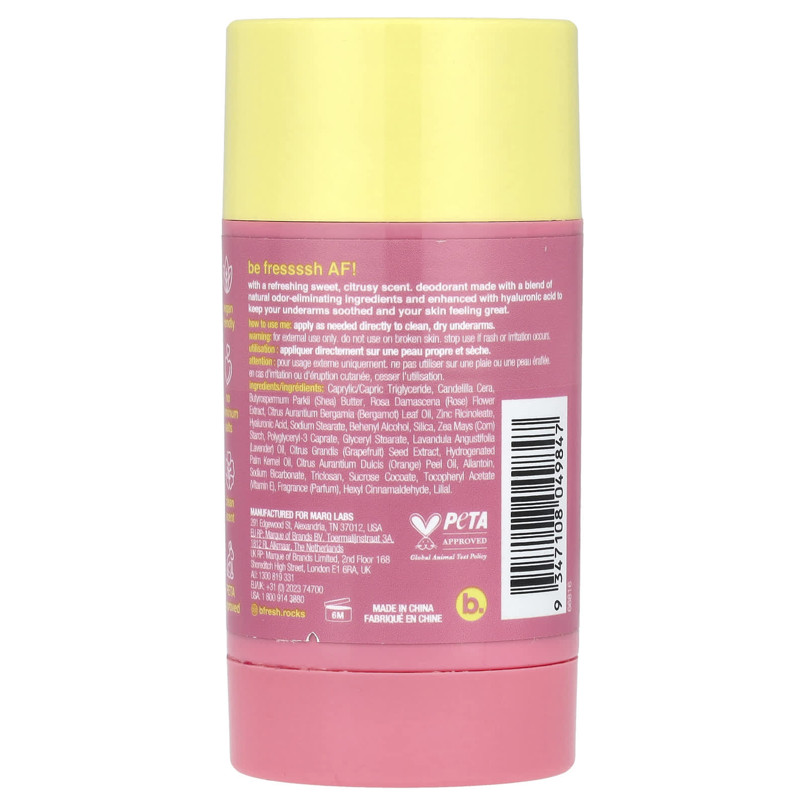 С освежающим сладким цитрусовым ароматом. Дезодорант, изготовленный из смеси натуральных ингредиентов, устраняющих запах, и усиленный гиалуроновой кислотой, чтобы ваши подмышки оставались спокойными, а ваша кожа чувствовала себя прекрасно.