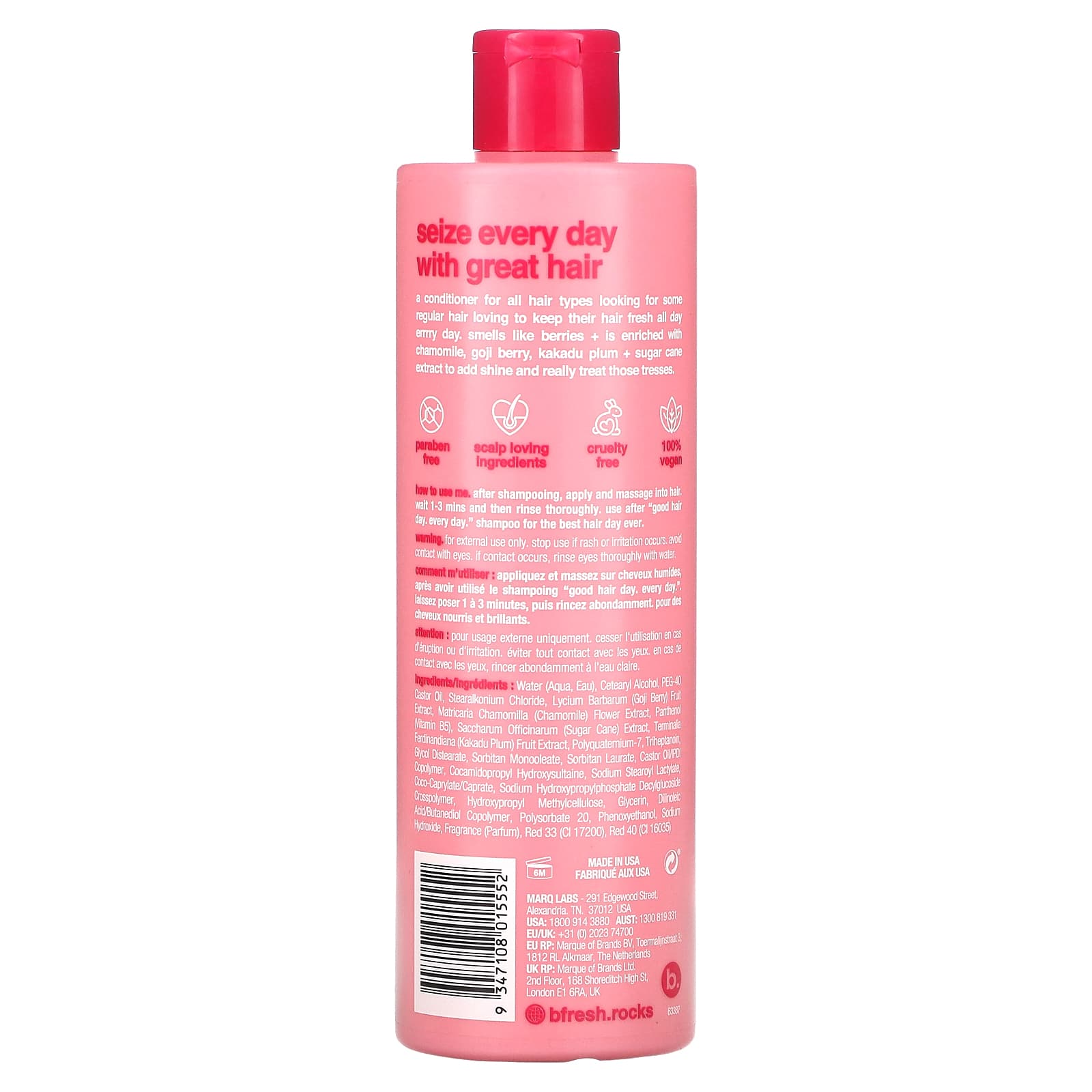 Кондиционер для всех типов волос, которым нужны нормальные волосы и который сохраняет свежесть в течение всего дня. Пахнет ягодами. Обогащен ромашкой, ягодами годжи, сливой какаду и экстрактом сахарного тростника, чтобы придать волосам блеск и по-настоящему ухаживать.