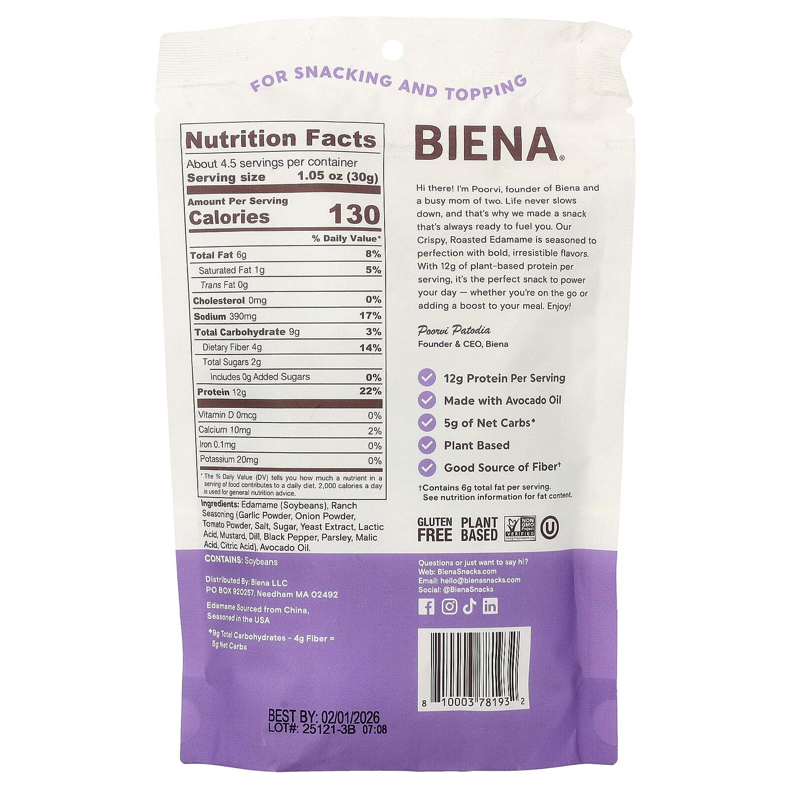 Hi there! I'm Poorvi, founder of Biena and a busy mom of two. Life never slows down, and that's why we made a snack that's always ready to fuel you. Our Crispy, Roasted Edamame is seasoned to perfection with bold, irresistible flavors. With 12g of plant-based protein per serving, it's the perfect snack to power your day - whether you're on the go or adding a boost to your meal. Enjoy! -Poorvi Patodia, Founder & CEO, Biena