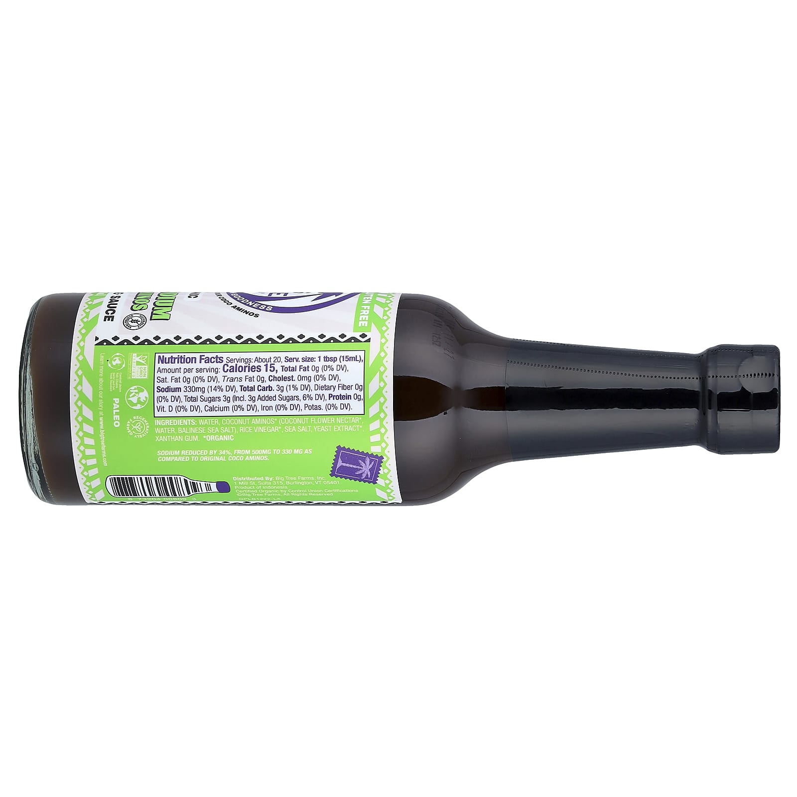 На 34% меньше натрия (с 500 до 330 мг) по сравнению с оригинальными кокосовыми аминокислотами.