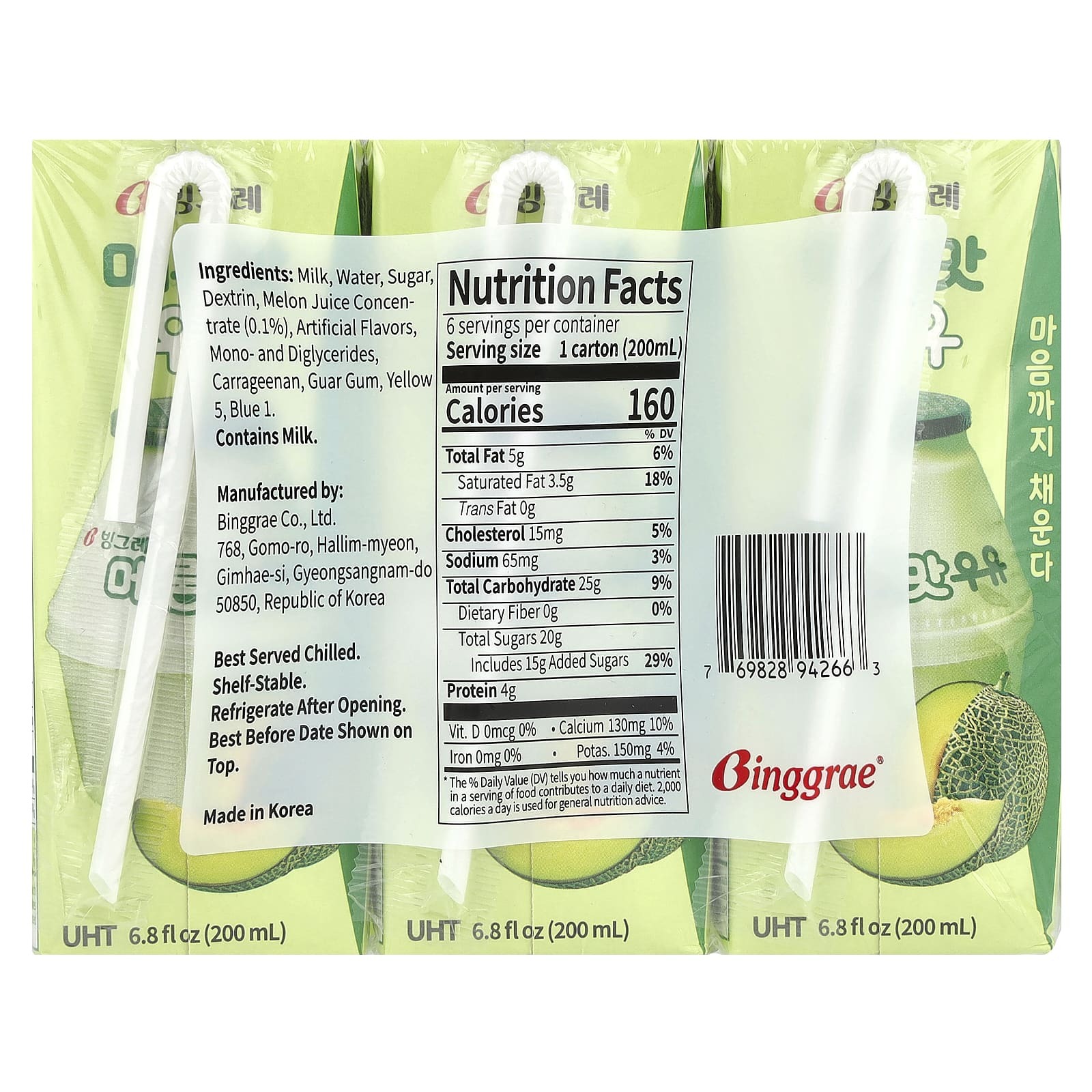 Молоко, вода, сахара, декстрин, концентрат сока дыни (0,1%), искусственных ароматизаторов, моно- и диглицериды, каррагинан, гуаровая камедь, краситель желтый 5, краситель синий 1.