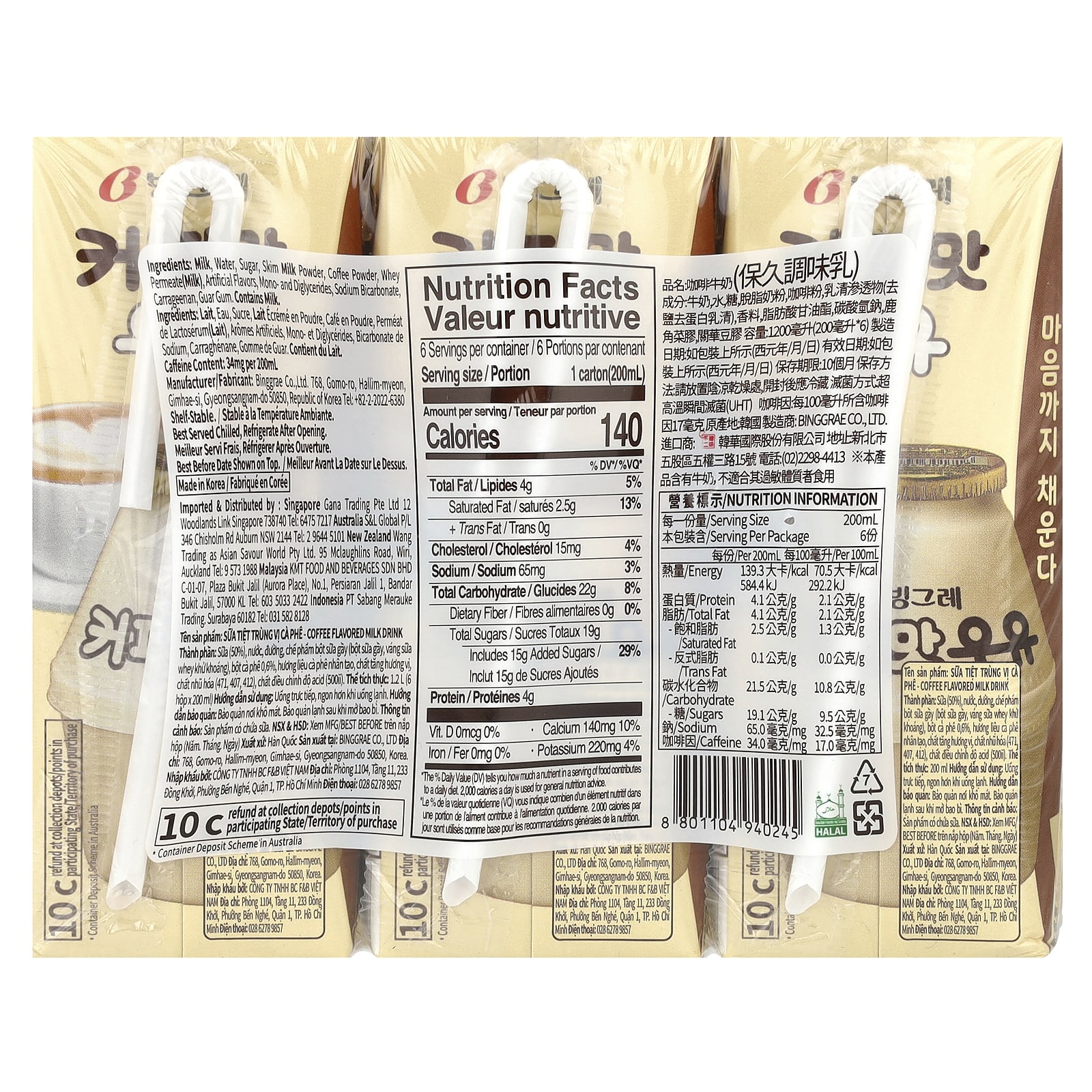 Молоко, вода, сахара, сухое обезжиренное молоко, кофейный порошок, пермеат сыворотки (молоко), искусственных ароматизаторов, моно- и диглицериды, бикарбонат натрия, каррагинан, гуаровая камедь.