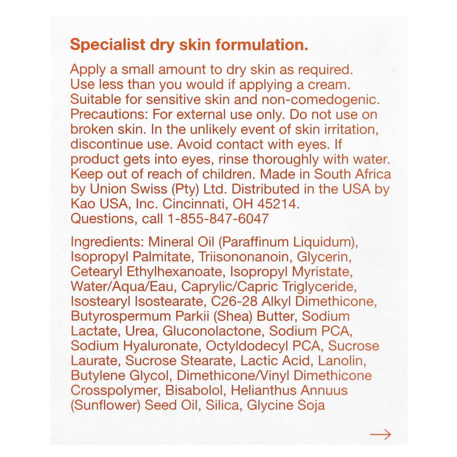 При необходимости нанесите небольшое количество средства на сухую кожу. Используйте меньше, чем при нанесении крема.