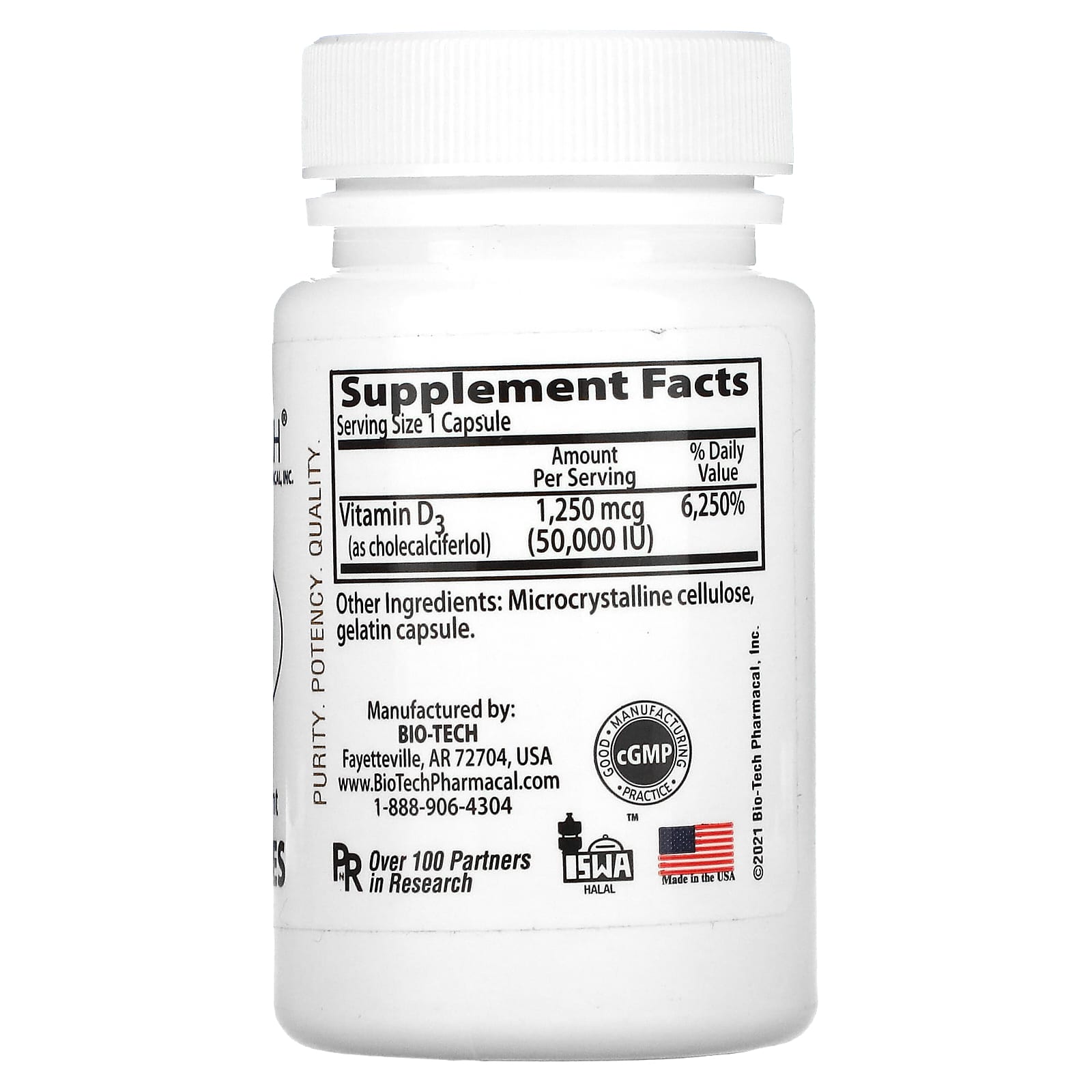| Витамин D3 (в виде холекальциферола) | 1250 мкг (50 000 МЕ) | 6250% |