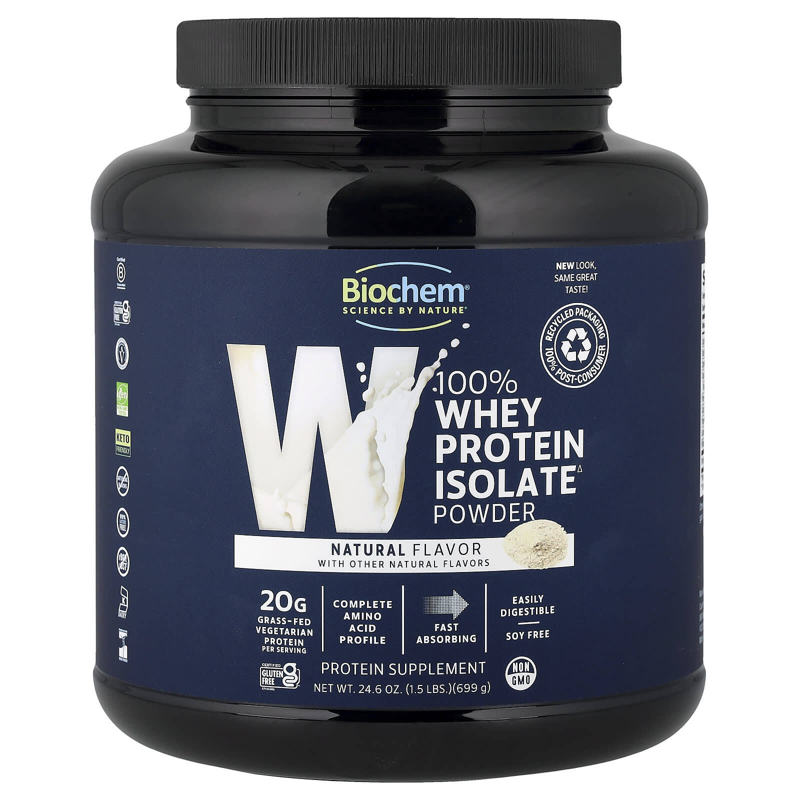 - Компания Biochem проходит ультрафильтрацию/микрофильтрацию, в результате которой получается 20 граммов 100% изолята сывороточного протеина△