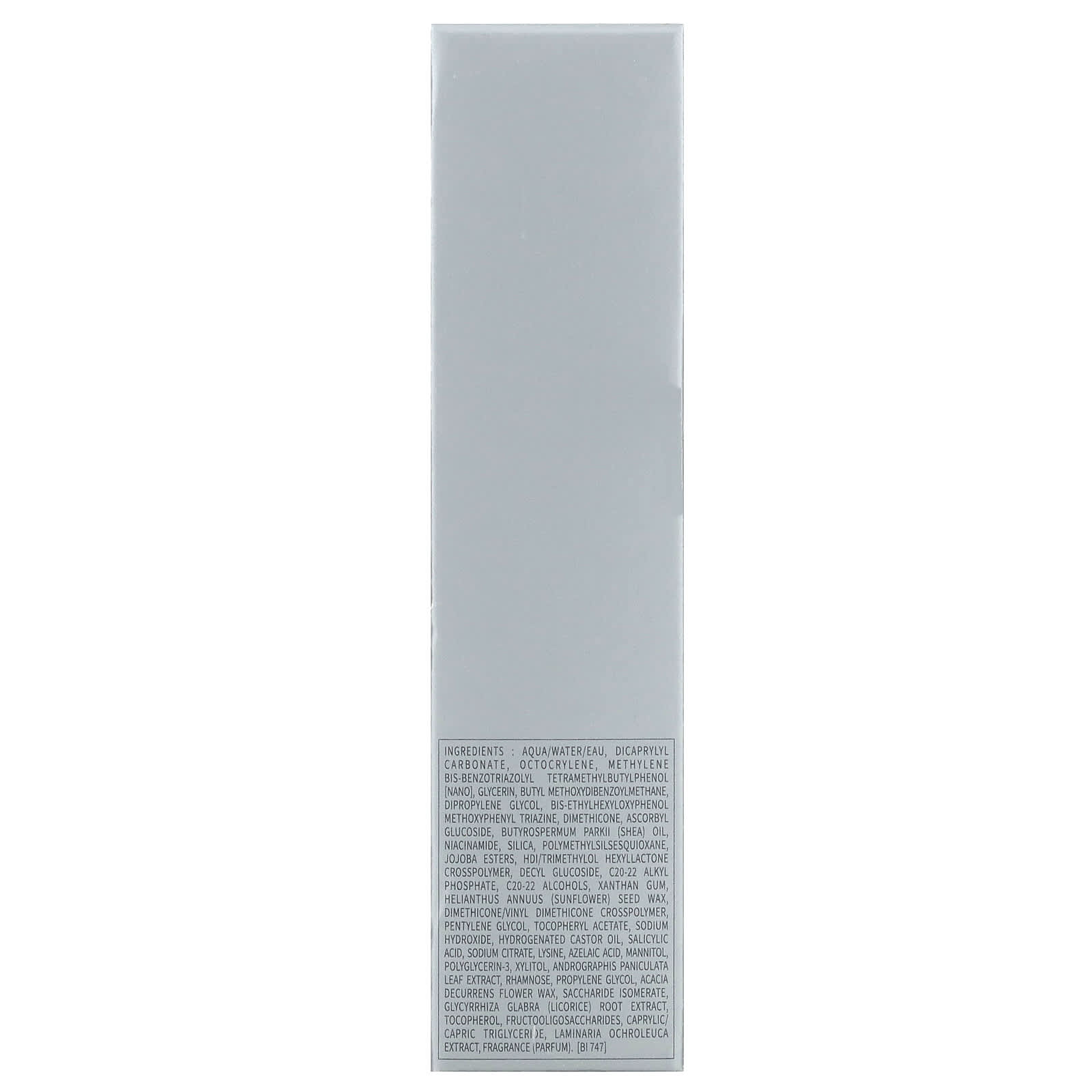Вода (Aqua/eau), дикаприлил карбонат, октокрилен, метилен бис-бензотриазолил тетраметилбутилфенол [нано], глицерин, бутилметоксидибензоилметан, дипропиленгликоль, бис-этилгексилоксифенол метоксифенил триазин, диметикон, аскорбил глюкозид, масло ши (Butyrospermum parkii), никотинамид, диоксид кремния, полиметилсилсесквиоксан, эфиры жожоба, HDI/триметилол гексалактон кроссполимер, децил глюкозид, c20-22 алкилфосфат, c20-22 спирты, ксантановая камедь, воск из семян подсолнечника (Helianthus annuus), диметикон/винил диметикон кроссполимер, пентилен гликоль, токоферилацетат, гидроксид натрия, гидрогенизированное касторовое масло, салициловой кислоты, цитрат натрия, лизин, азелаиновая кислота, маннит, полиглицерин-3, ксилитол, экстракт листьев андрографиса метельчатого, рамноза, пропиленгликоль, воск из цветков акации низбегающей (Acacia decurrens), инвертный сахар, экстракт корня солодки (Glycyrrhiza glabra), токоферол, фруктоолигосахариды, каприловый/каприновый триглицерид, экстракт ламинарии охролеукс, отдушка (парфюмерная композиция).