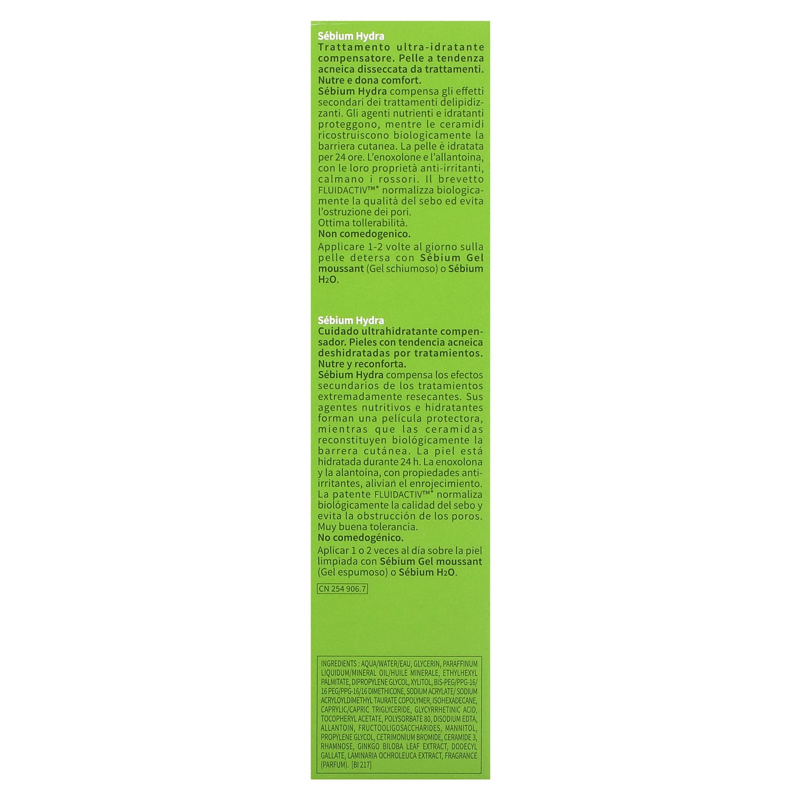 Свойства: некоторые процедуры ультра-сушки вызывают значительное шелушение кожи, стянутость и покраснение. Sébium Hydra нейтрализует эти побочные эффекты, поэтому лечение можно продолжать. Питательные и увлажняющие вещества создают защитную пленку, а керамиды биологически восстанавливают кожный барьер. Кожа увлажняется в течение 24 часов. Енолоксон и аллантоин успокаивают кожу и уменьшают покраснение. Патент FLUIDACTIV ™ биологически нормализует качество кожного жира и предотвращает закупорку пор, являющуюся источником дефектов кожи. Насыщенная текстура, быстро впитывается. Не слипается. Очень хорошая переносимость. Продукт протестирован под дерматологическим контролем.