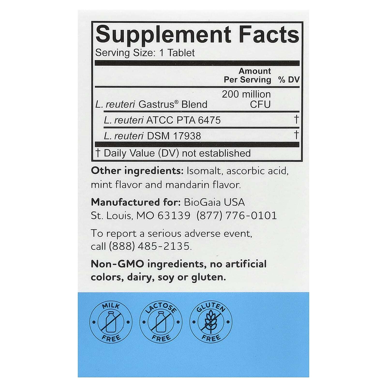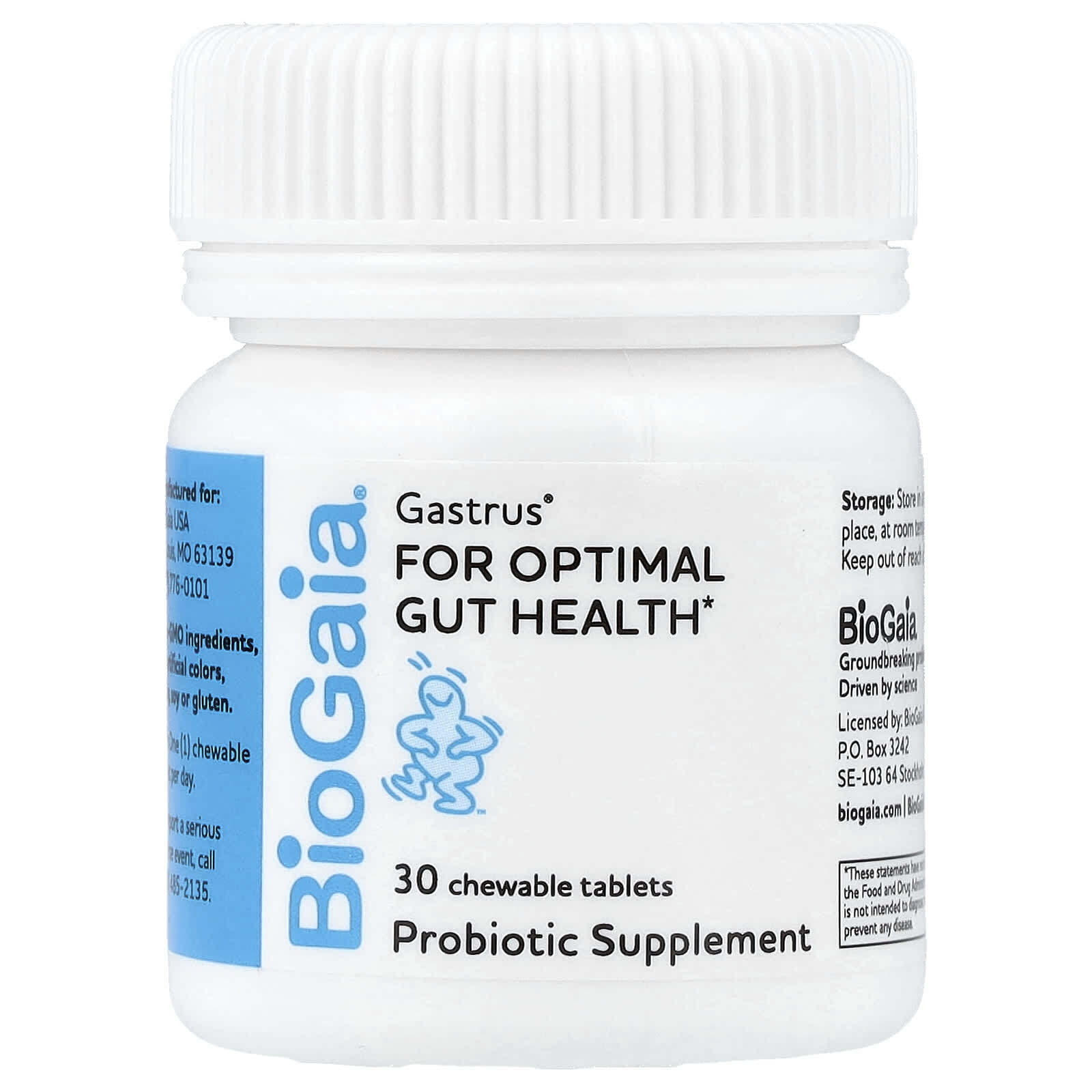 BioGaia® Gastrus® — это пищевая добавка, содержащая запатентованную смесь пробиотиков молочнокислых бактерий реутери Limosilactobacillus reuteri Gastrus® (L. reuteri DSM 17938 и L. reuteri ATCC PTA 6475), которая помогает поддерживать естественный баланс в желудке и кишечнике.
