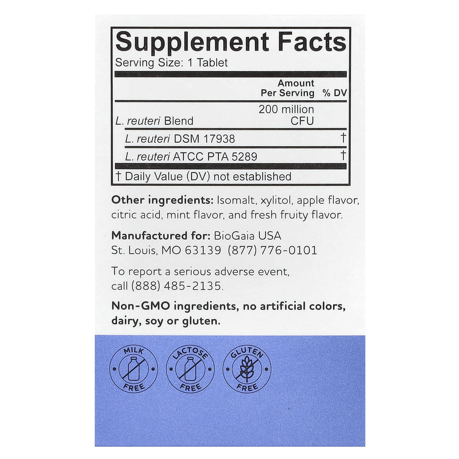 | Смесь L. reuteri | 200 млн КОЕ | |