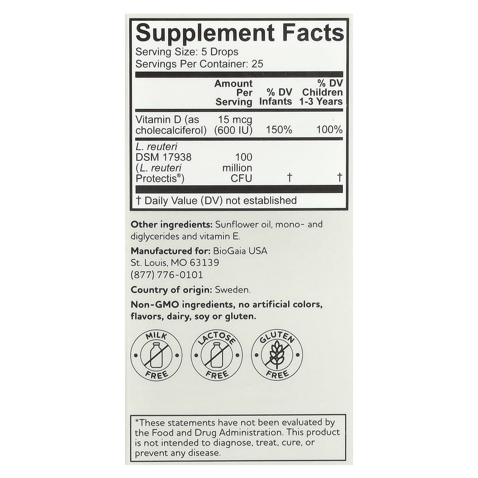BioGaia® Protectis® BABY в каплях Immune Active - это пищевая добавка, содержащая запатентованный пробиотик Limosilactobacillus reuteri Protectis® (L. reuteri DSM 17938) и витамин D3, который способствует нормальной работе иммунной системы.