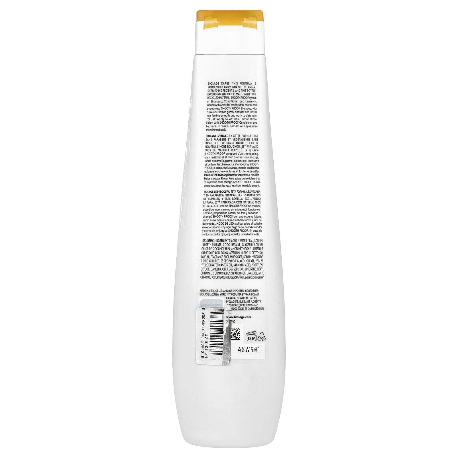 Biolage Cares: Эта веганская формула не содержит парабенов и ингредиентов животного происхождения. Флакон, за исключением крышки, изготовлен из 100% переработанного материала. Система Smooth Proof из шампуня, кондиционера и несмываемого ингредиента с добавлением камелии обеспечивает гладкость и контроль пушения. . Шампунь Smooth Proof с роскошной пеной мягко очищает волосы, делая их гладкими и легко распутывающимися.