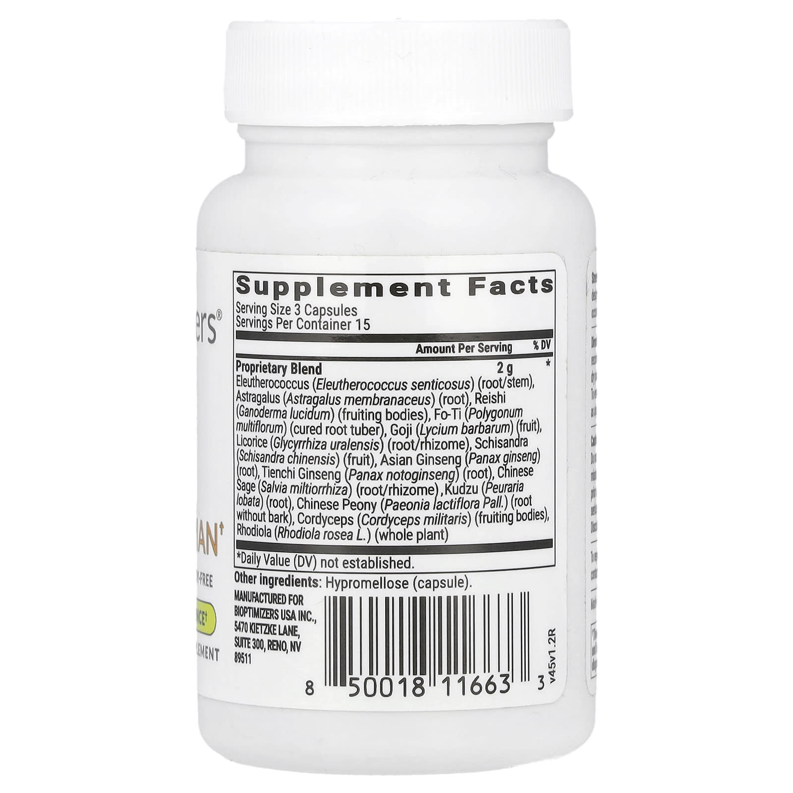 | Запатентованная смесь Элеутерококк колючий (Eleutherococcus senticosus) (корень / стебель), астрагал (Astragalusmbranaceus) (корень), рейши (Ganoderma lucidum) (плодовые тела), многоцветковый (Polygonum multiflorum) (высушенный клубень), годжи (Lycium barbarum) (плоды ), Солодки (Glycyrrhiza uralensis) (корень / корневище), лимонник (Schisandra chinensis) (плоды), корень азиатского женьшеня (Panax ginseng), женьшень тяньши (Panax notoginseng) (корень), шалфей китайский (Salvia miltiorrh) корневище), кудзу (Peuraria lobata) (корень), китайский пион (Paeonia lactiflora Pall.) (корень без коры), кордицепс (Cordyceps militaris) (плодовые тела), родиола (Rhodiola rosea L.) (целое растение) | 2 г | * |