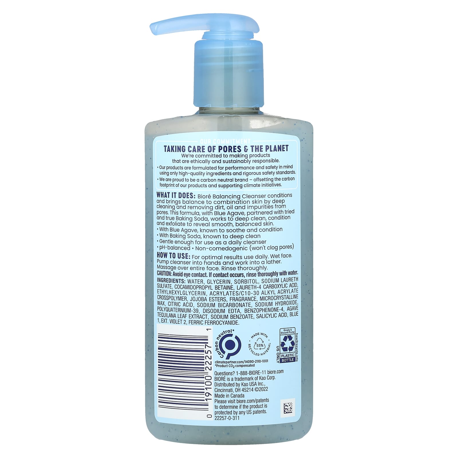Балансирующее средство для очистки пор от Biore ухаживает и восстанавливает баланс комбинированной кожи, глубоко очищая и удаляя грязь и жир из пор. Эта формула с натуральным экстрактом голубой агавы в сочетании с проверенной временем пищевой содой способствует глубокой очистке, восстановлению и отшелушиванию кожи, ее разглаживанию и выравниванию баланса.