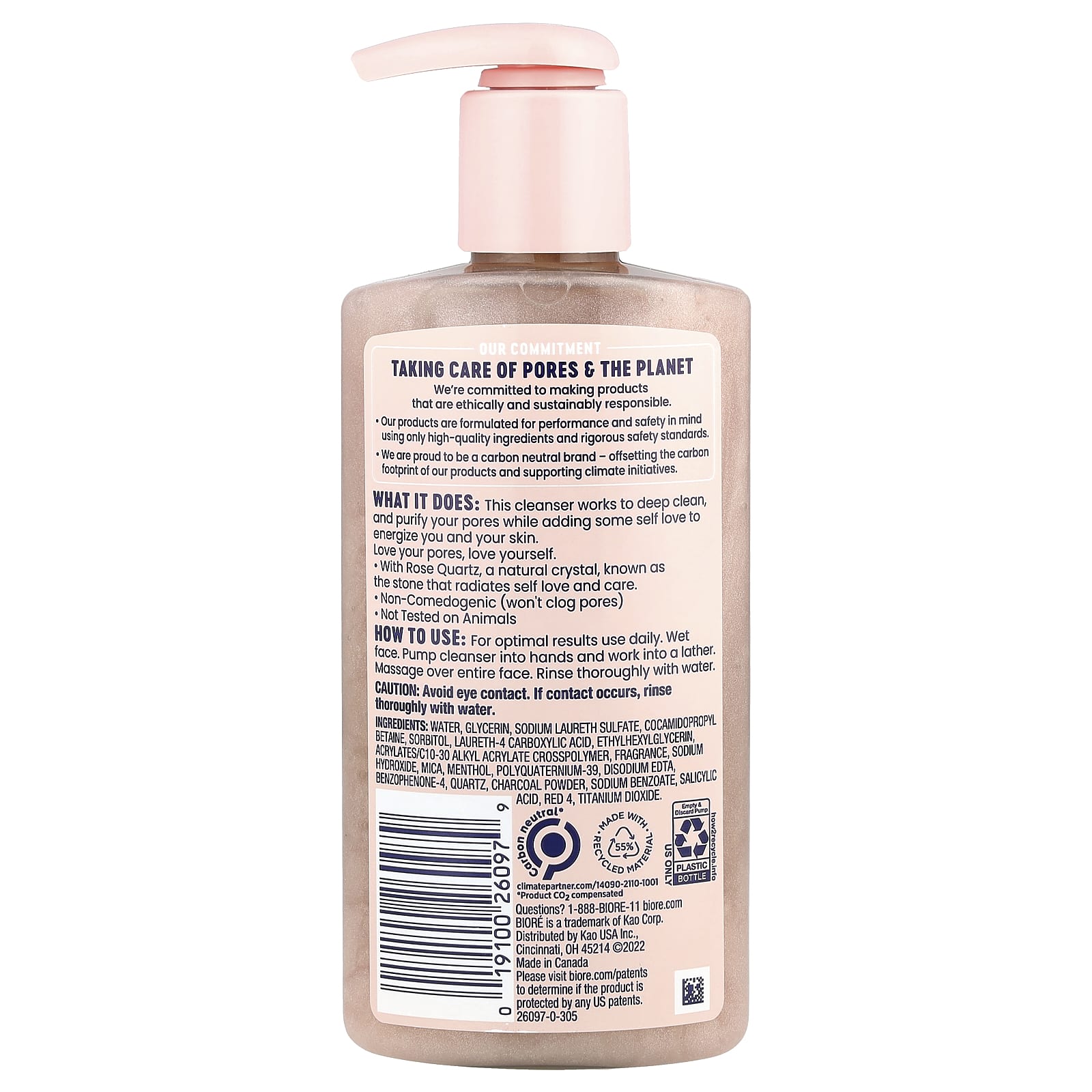 Вода, глицерин, лауретсульфат натрия, кокамидопропилбетаин, сорбитол, лаурет-4 карбоновая кислота, этилгексилглицерин, акрилат/c10-30 алкил акрилат кроссполимер, отдушка, гидроксид натрия, слюда, ментол, поликватерниум-39, двунатриевая ЭДТК, бензофенон-4, кварц, порошок из древесного угля, бензоат натрия, салициловая кислота, краситель красный 4, диоксид титана.