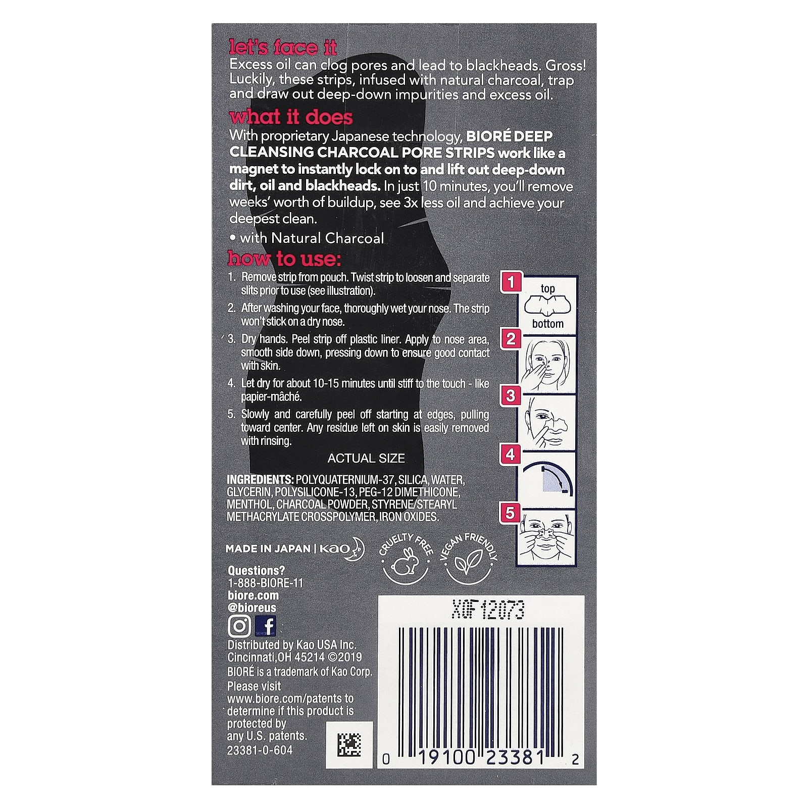 Благодаря запатентованной японской технологии полоски для очищения пор с древесным углем от Bioré работают как магнит, мгновенно удерживая и удаляя глубокие загрязнения, жир и черные точки. Всего за 10 минут вы удалите накопившиеся за несколько недель налеты, увидите в 3 раза меньше масла и добьетесь максимальной чистоты.