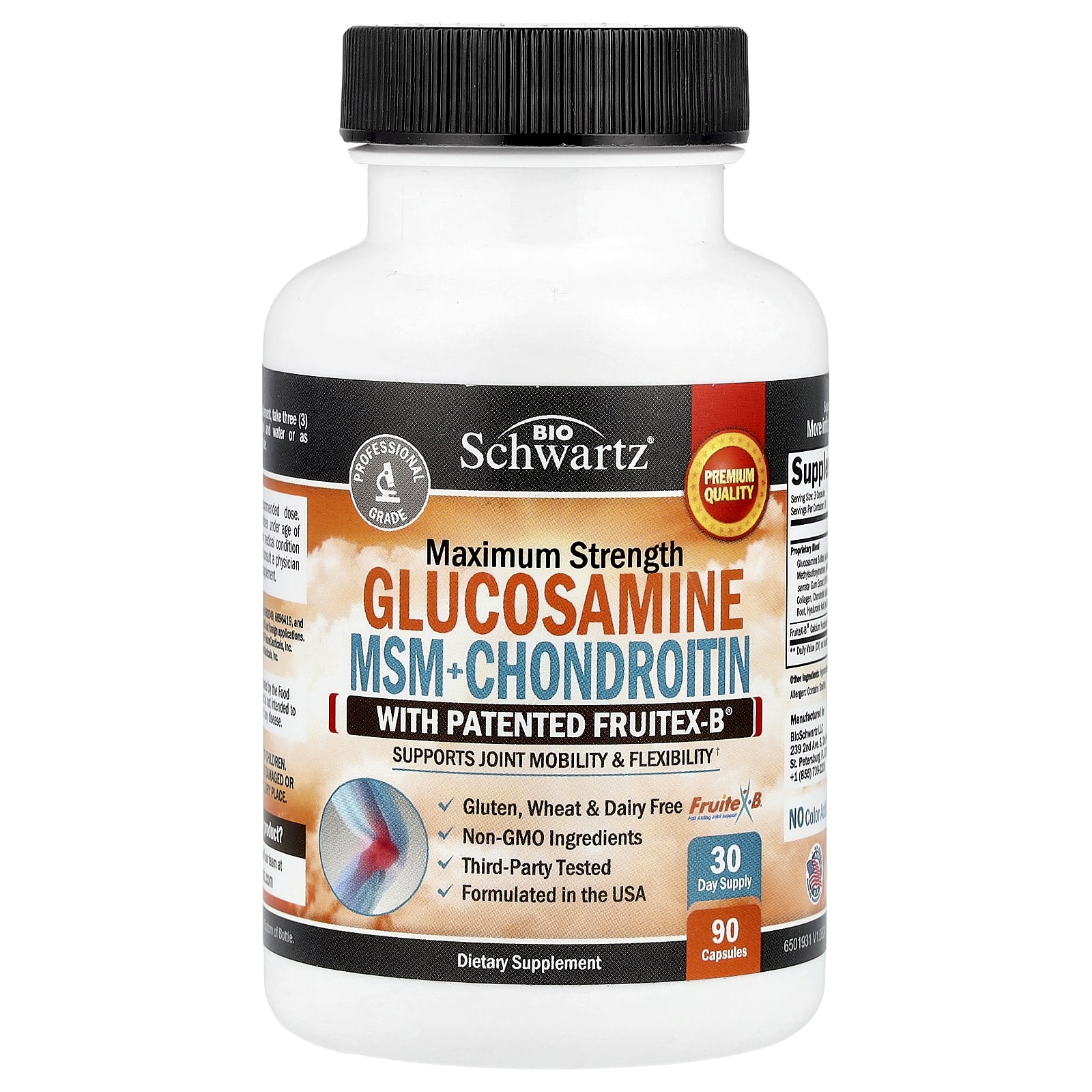 | Запатентованная смесь Сульфат глюкозамина (в виде сульфата глюкозамина 2NaCI), метилсульфонилметан (МСМ), органический корень куркумы, экстракт камеди босвеллии пильчатой (65% босвеллиевая кислота), гидролизованный куриный коллаген, хондроитинсульфат натрия, бромелаин (0,4 ГДУ) Гиалуронат) | 2000 мг | ** |
