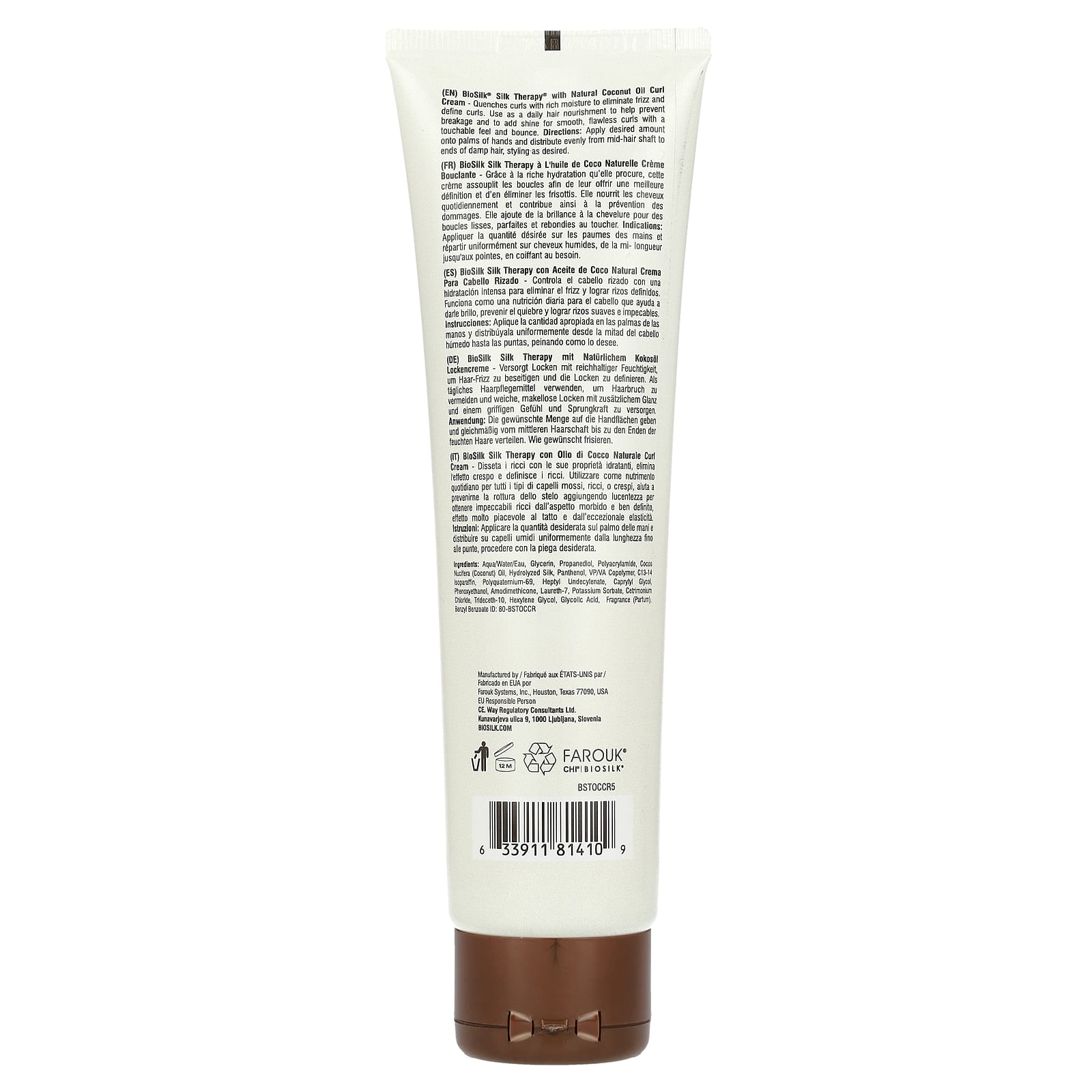 Крем для завивки волос BioSilk® Silk Therapy® с натуральным кокосовым маслом - увлажняет локоны, устраняет пушение и подчеркивает локоны. Используйте в качестве ежедневного средства для ухода за волосами, чтобы предотвратить ломкость и придать блеск волосам, делая их гладкими, безупречными и упругими.