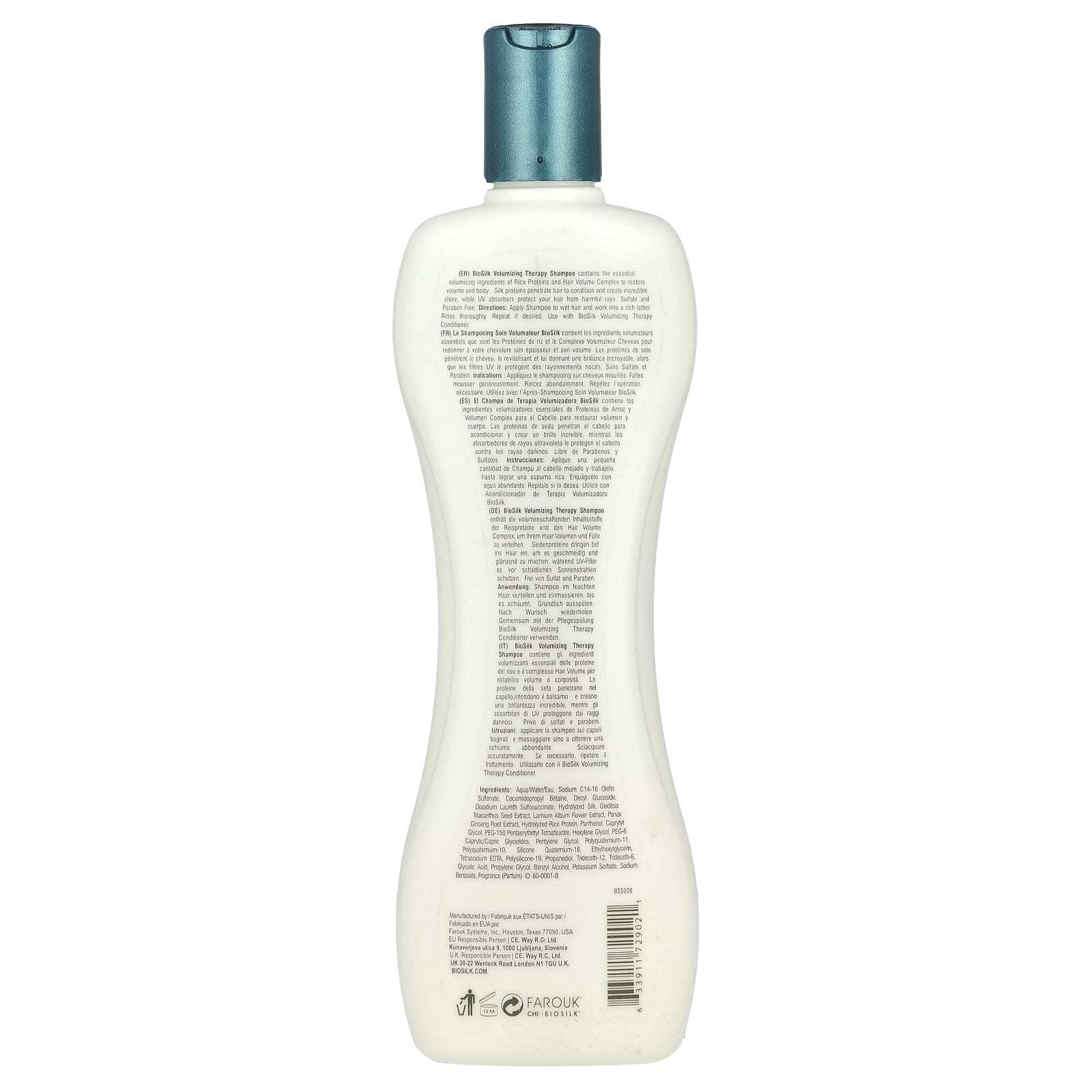 Терапевтический шампунь для увеличения объема волос BioSilk содержит необходимые для увеличения объема ингредиенты: рисовые протеины и комплекс для увеличения объема волос для восстановления объема и объема волос. Протеины шелка проникают в волосы, кондиционируют и создают невероятный блеск, а поглотители ультрафиолета защищают волосы от вредных лучей.