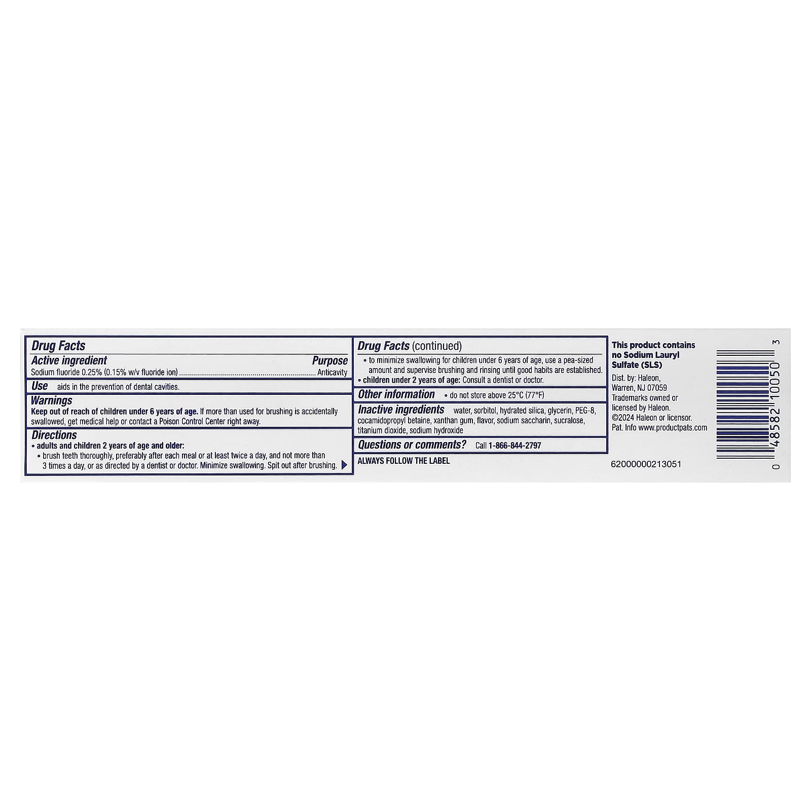 | Вспомогательные ингредиенты: вода, сорбитол, гидратированный диоксид кремния, глицерин, ПЭГ-8, кокамидопропилбетаин, ксантановая камедь, ароматизатор, сахарин натрия, сукралоза, диоксид титана, гидроксид натрия. Этот продукт не содержит лаурилсульфата натрия (SLS). | |